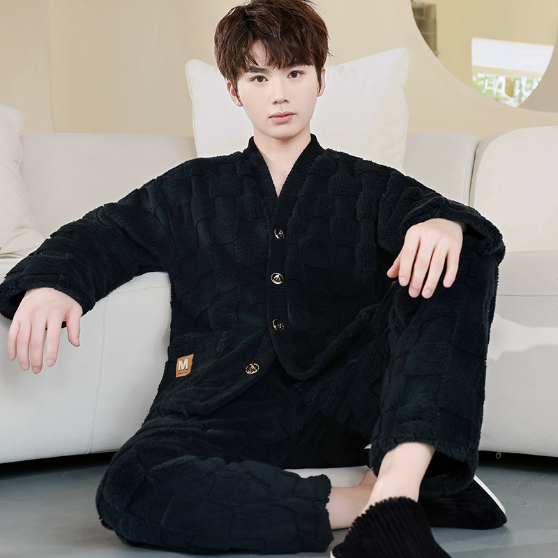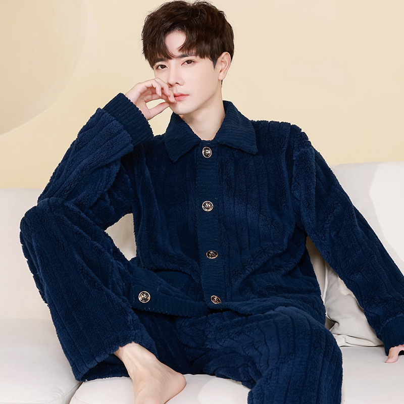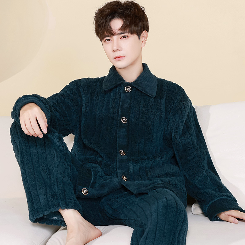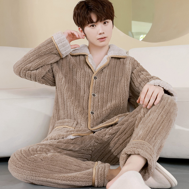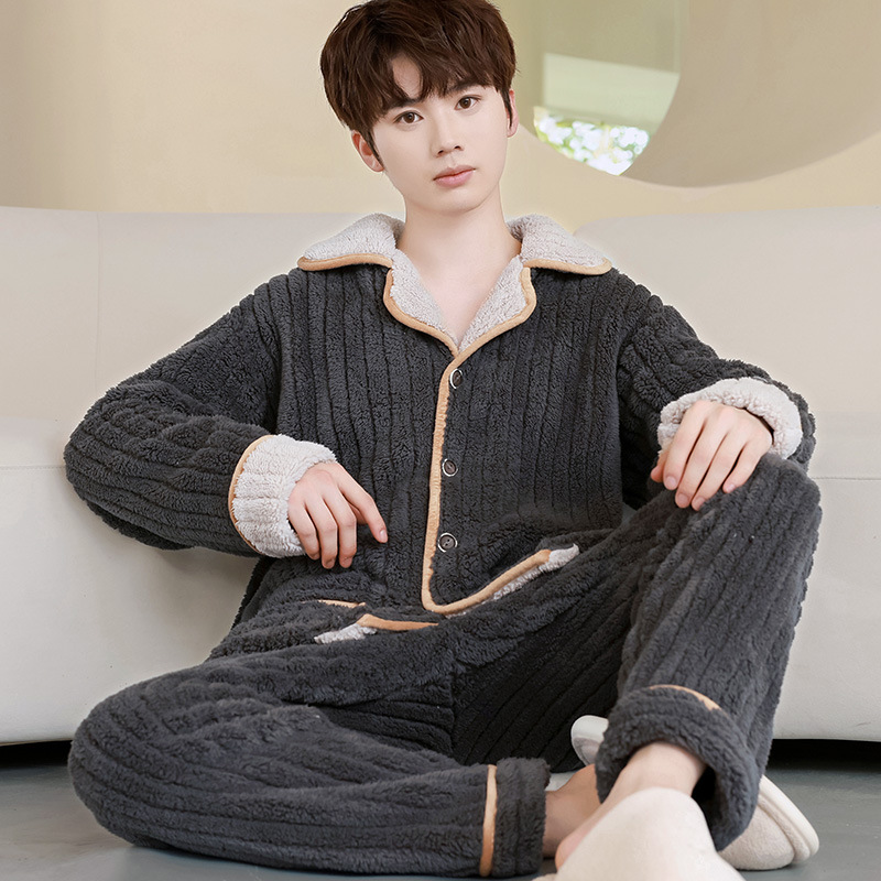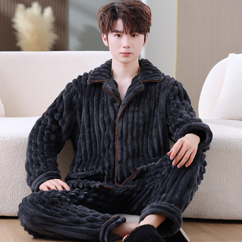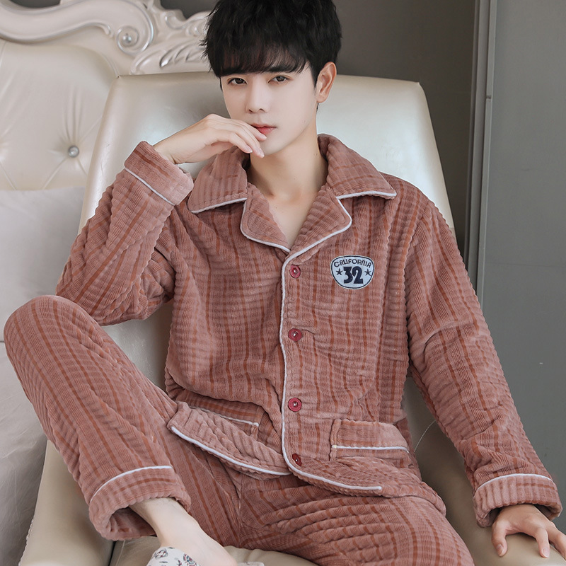 2024 뉴 코랄 플리스 파자마 남자 겨울 두꺼운 남자 세트 기모 플란넬 가을/겨울 홈웨어 남성