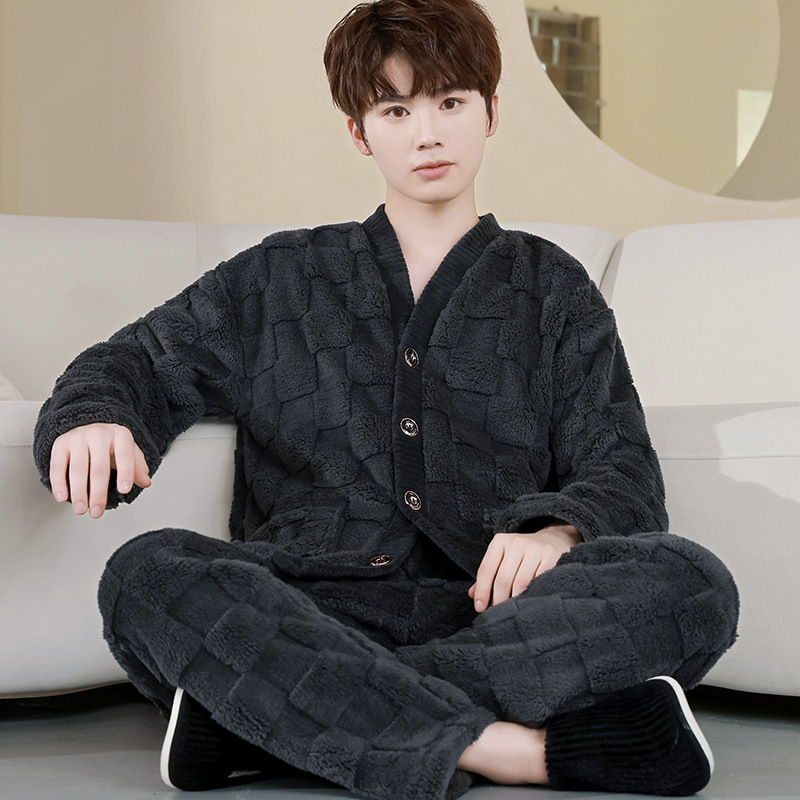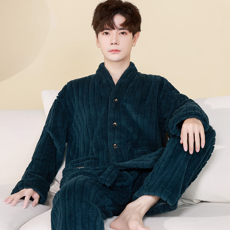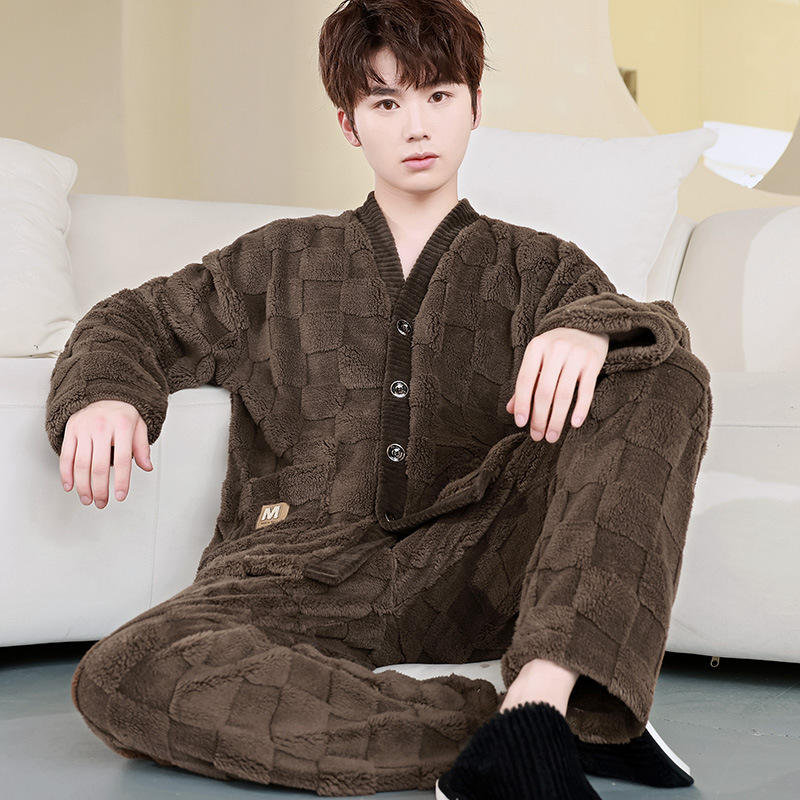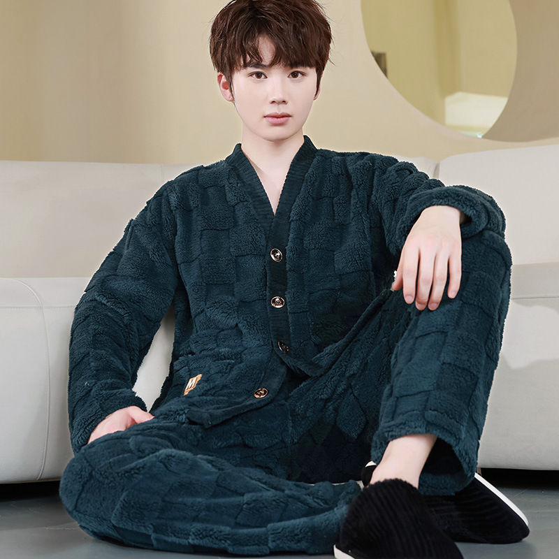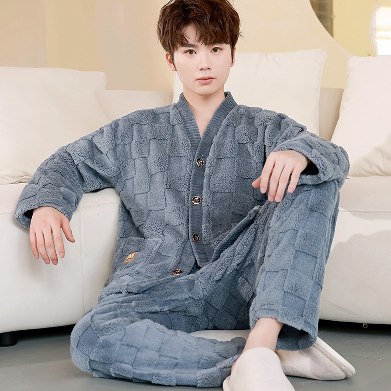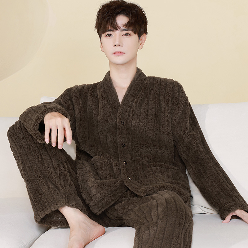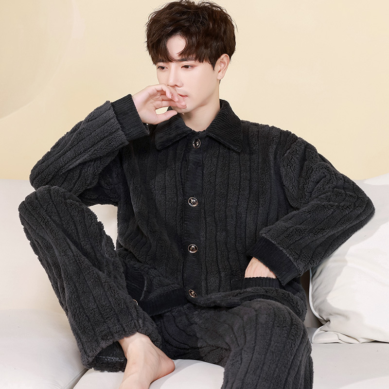 2024 뉴 코랄 플리스 파자마 남자 겨울 두꺼운 남자 세트 기모 플란넬 가을/겨울 홈웨어 남성