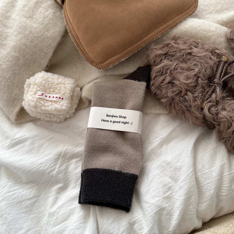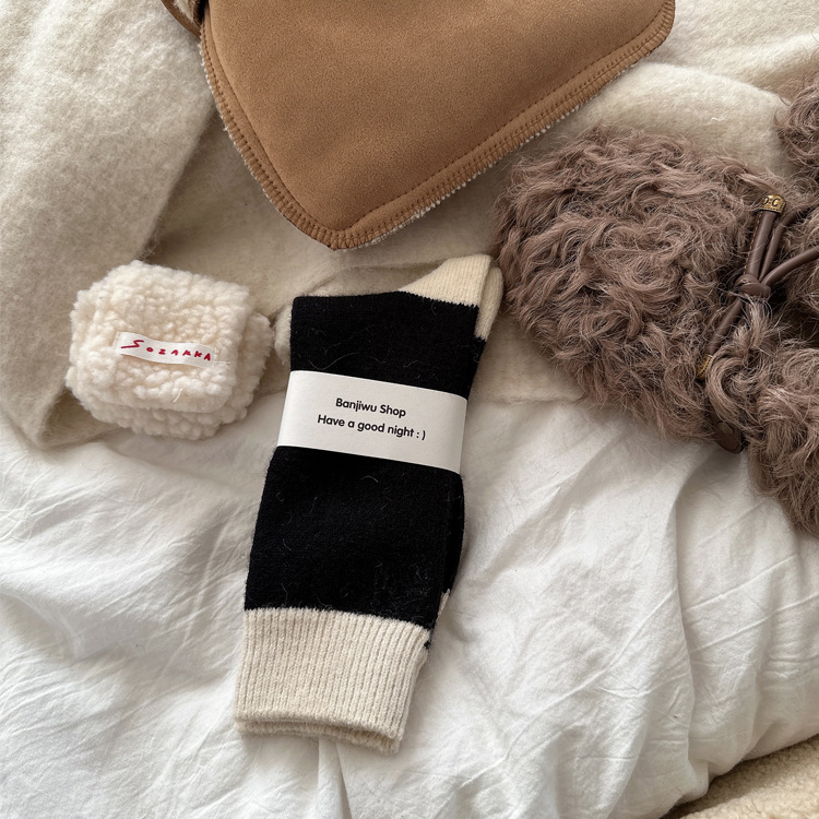 양말 여성의 가을 및 겨울 새로운 중간 길이 양말 두꺼운 따뜻한 한국 색상 매칭 양모 양말 코일 양말 대비 색상 긴 양말