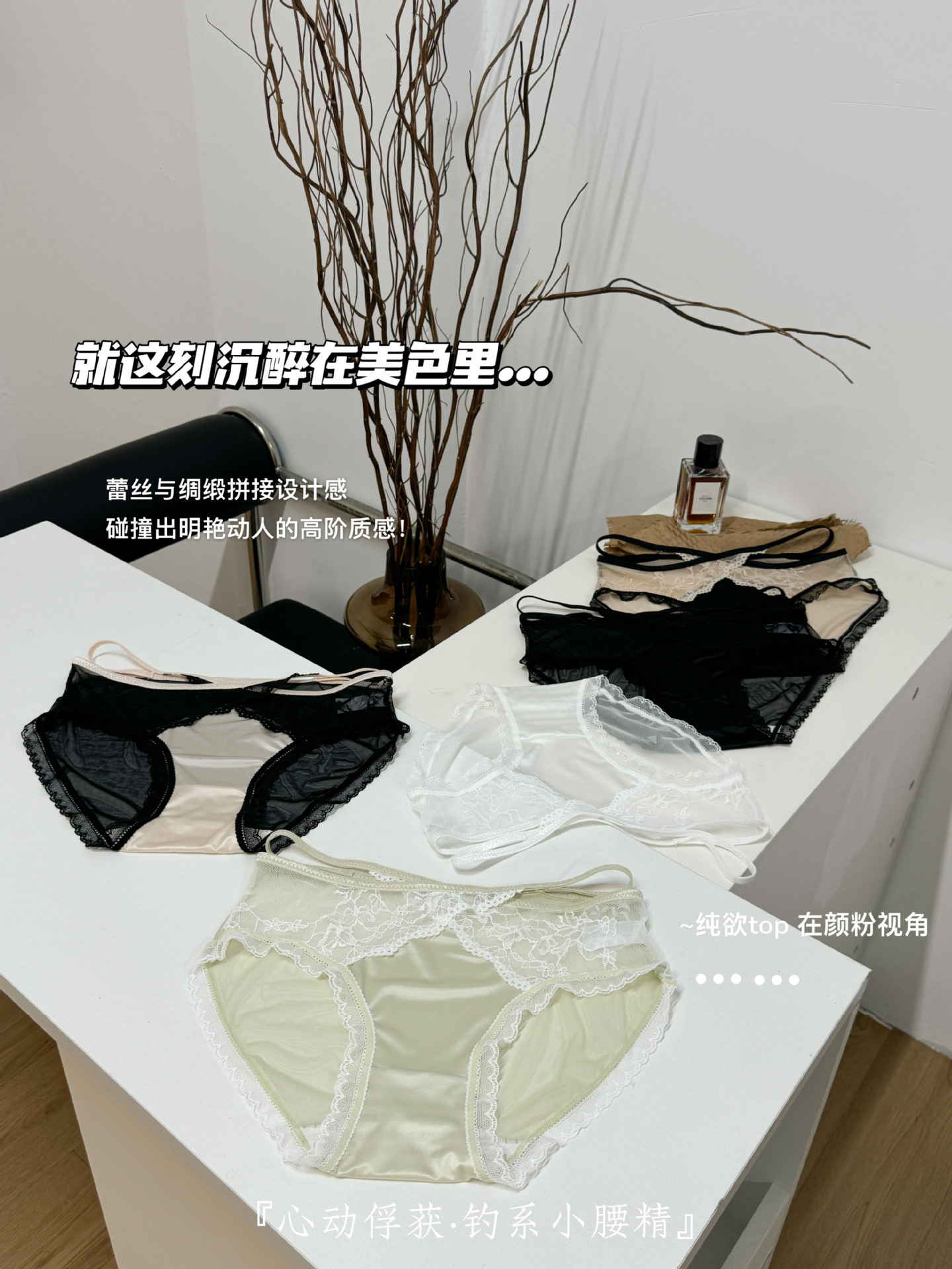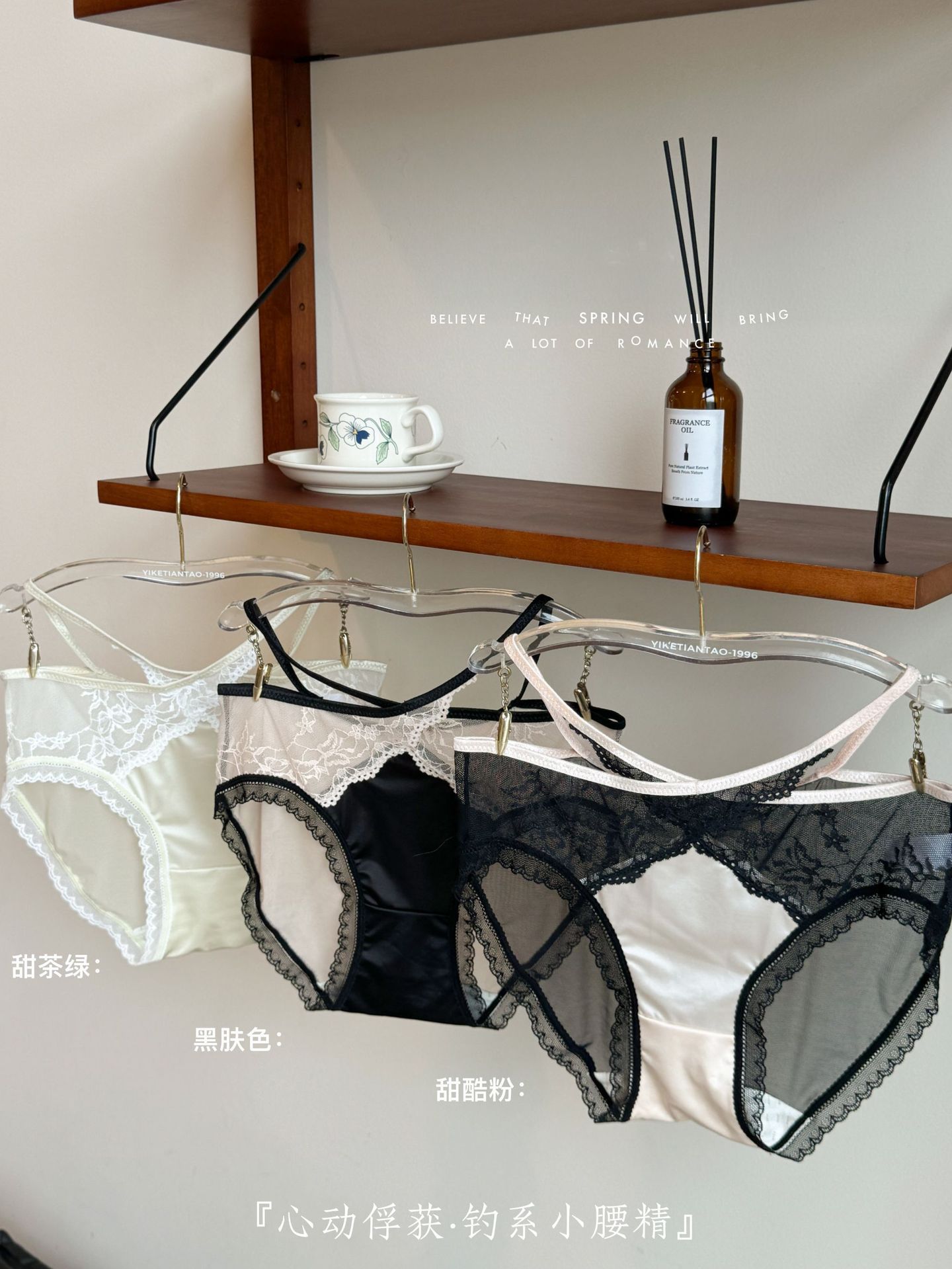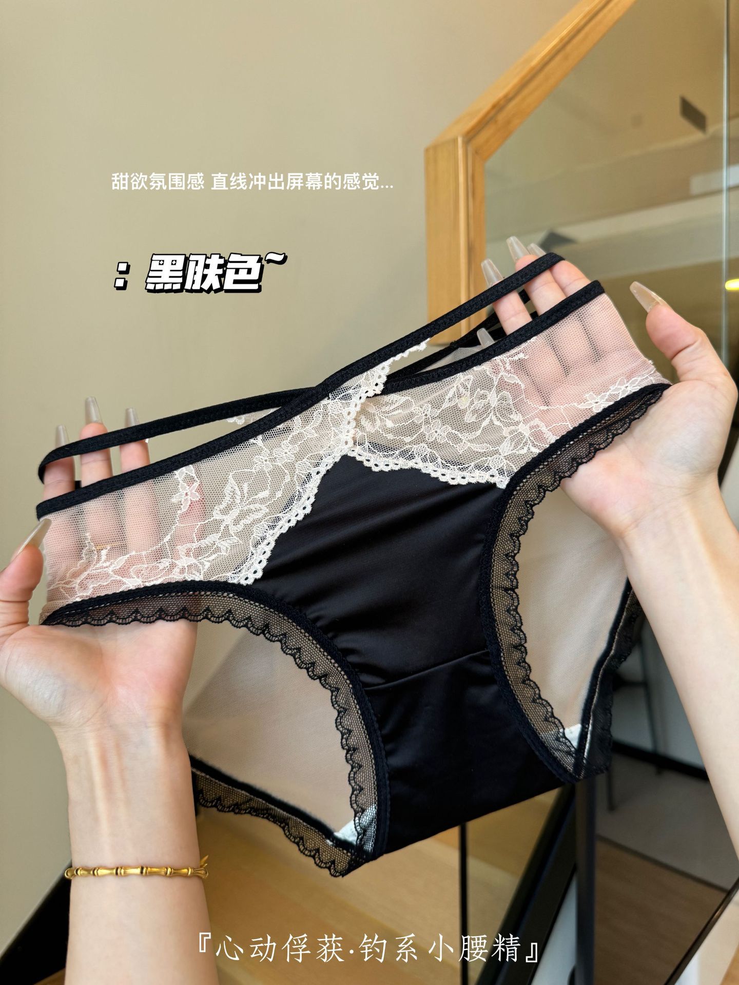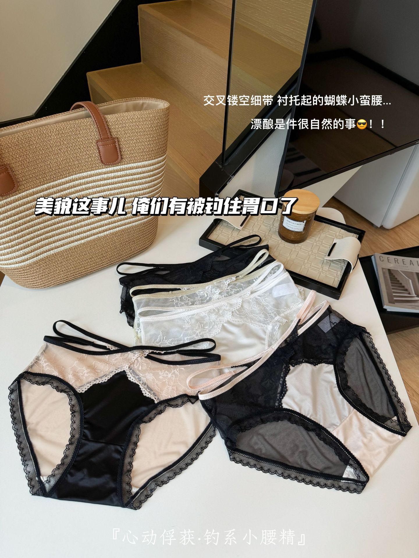 순수 할로우 반 투명 메쉬 스티칭 대조 컬러 크로스 속옷 여성의 섹시한 레이스 속눈썹 코튼 크로치 소녀의 브리프스토어 가기