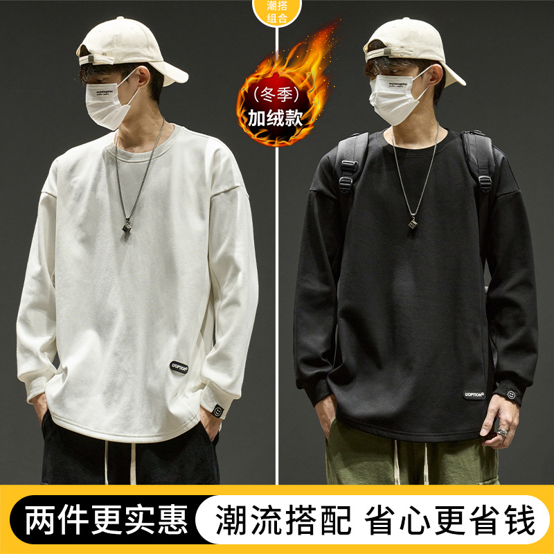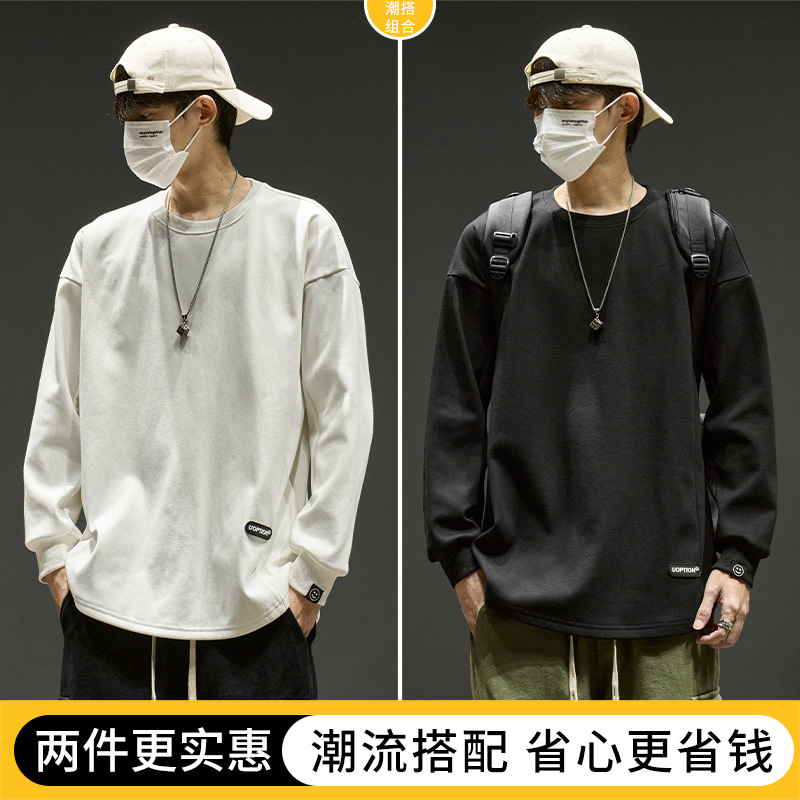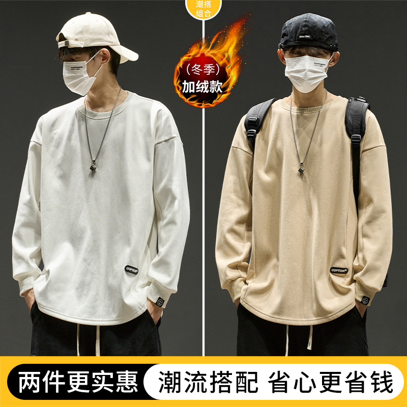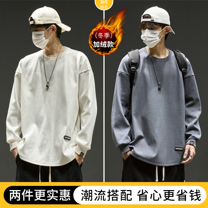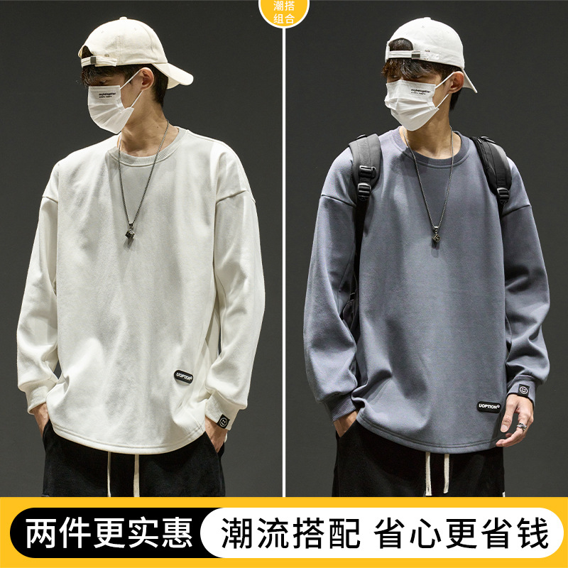 봄과 가을을위한 가을 소년 미국 스웨터를위한 헤비 코튼 긴팔 티셔츠 남성용 내복 화이트 베이스 셔츠스토어 가기
