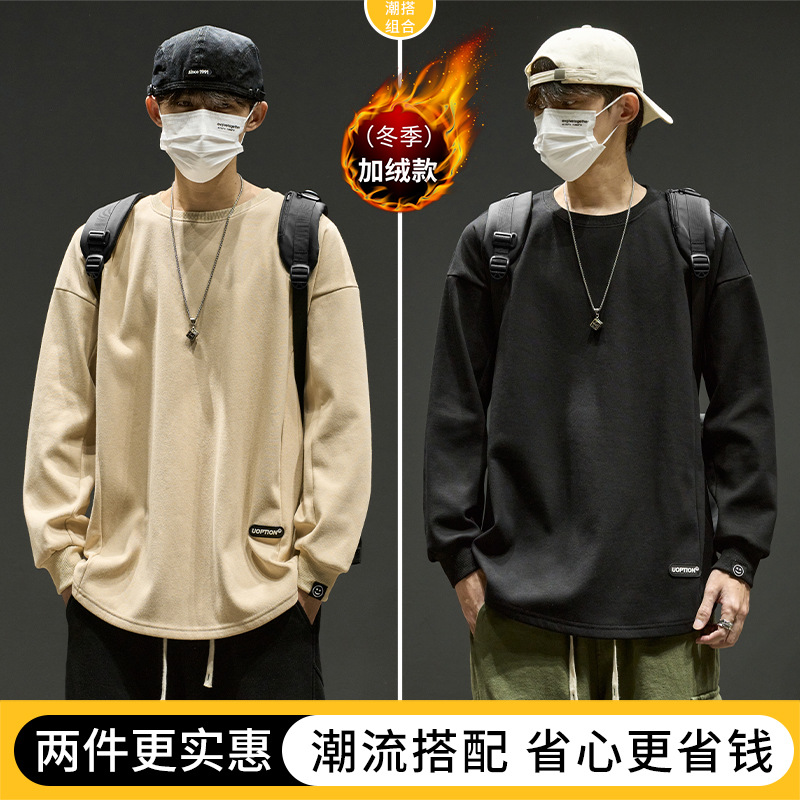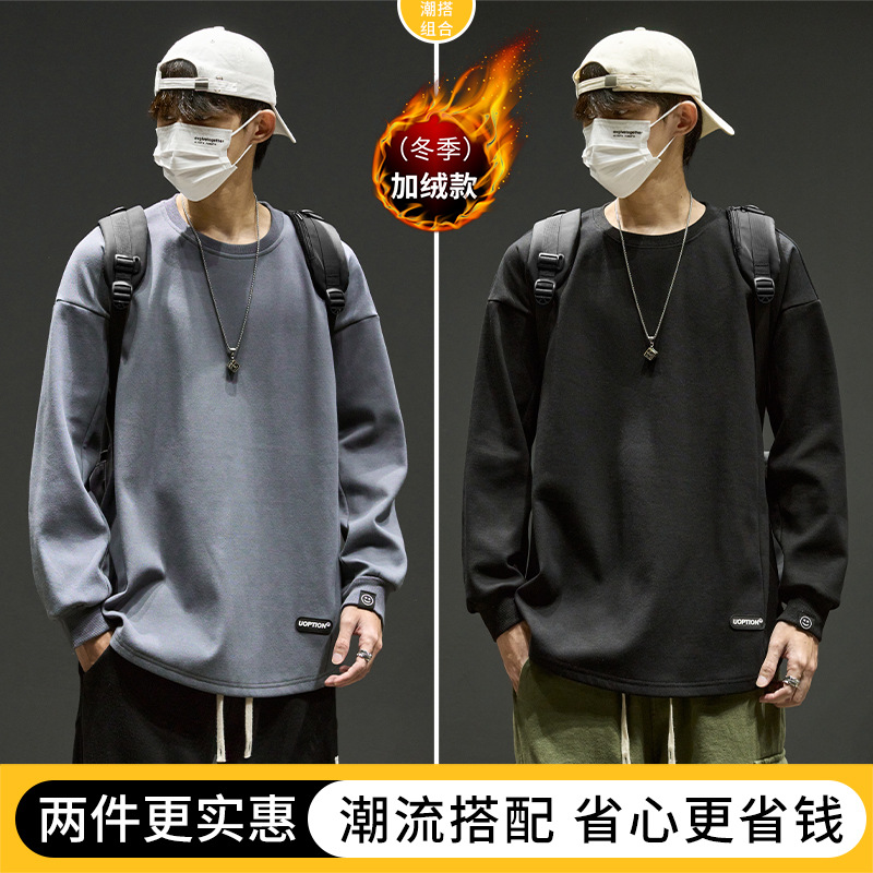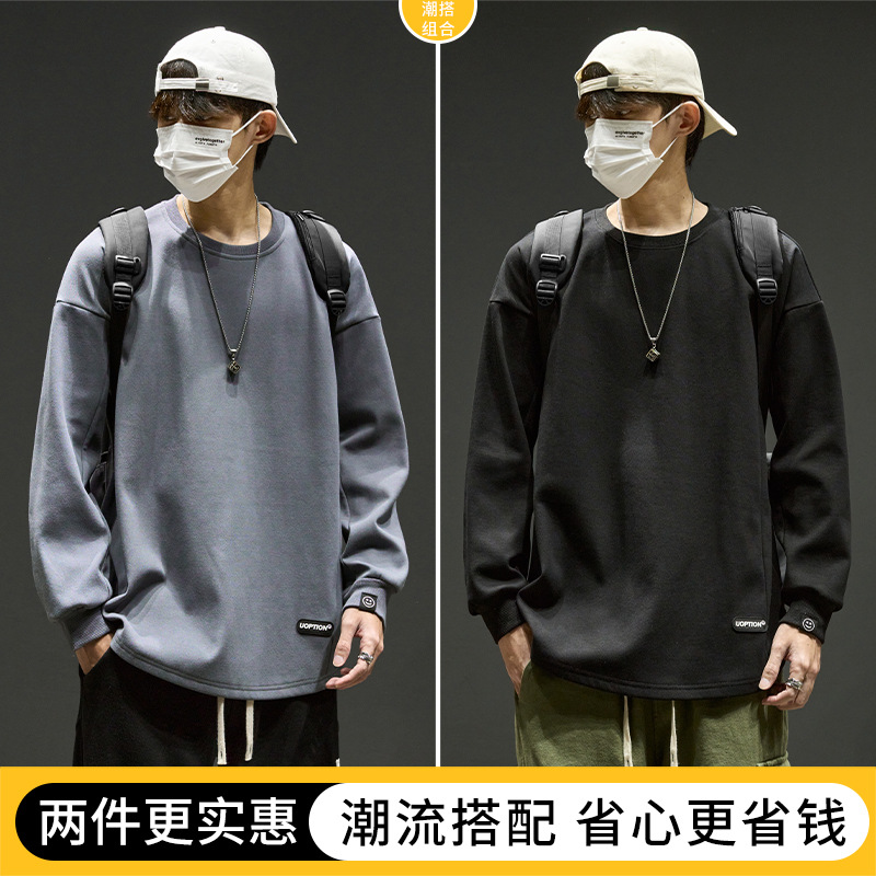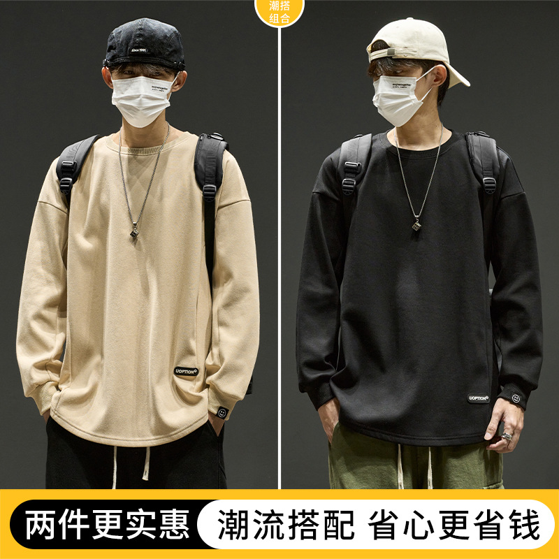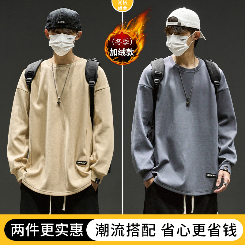 봄과 가을을위한 가을 소년 미국 스웨터를위한 헤비 코튼 긴팔 티셔츠 남성용 내복 화이트 베이스 셔츠스토어 가기