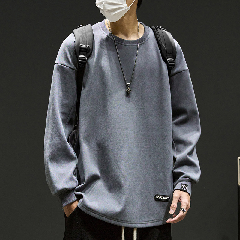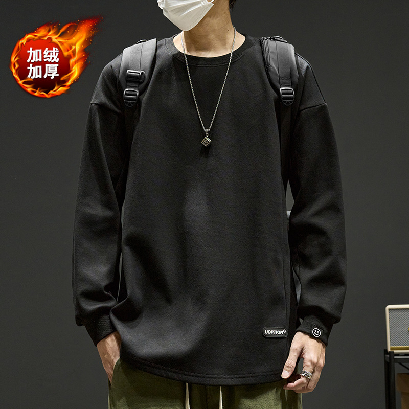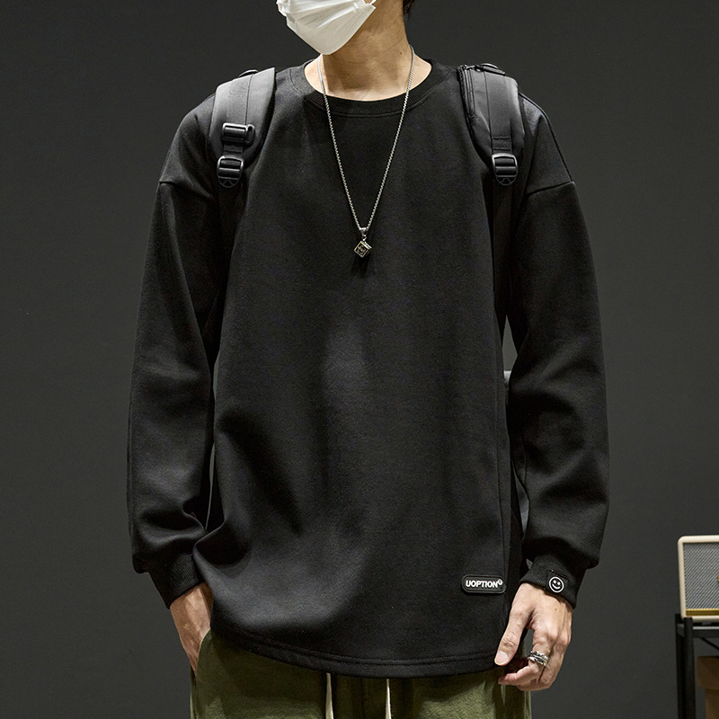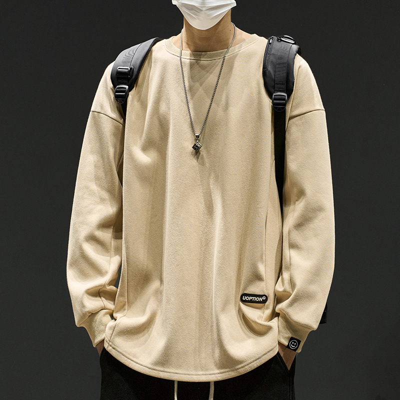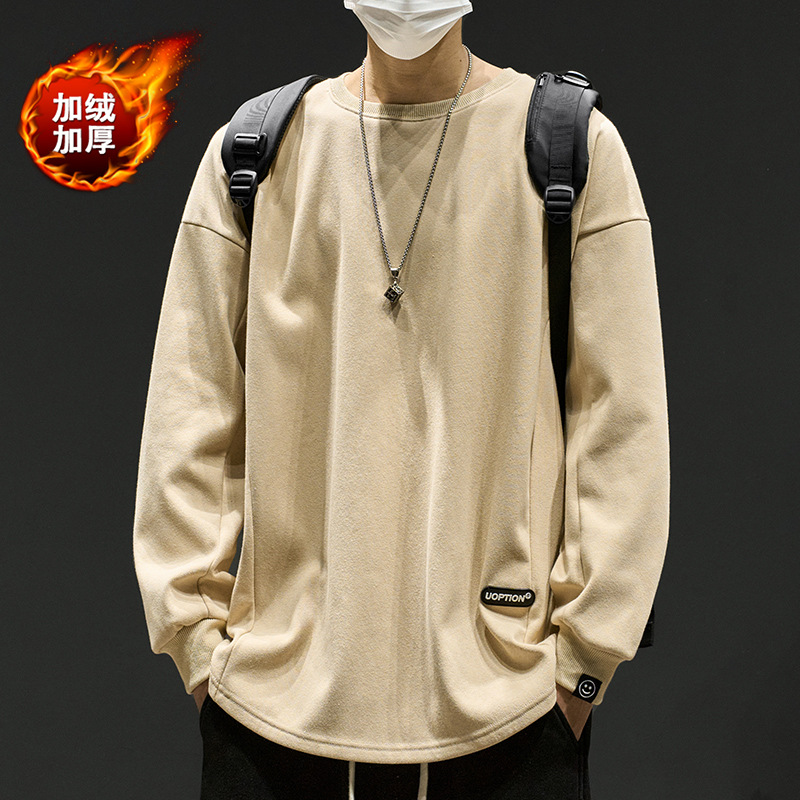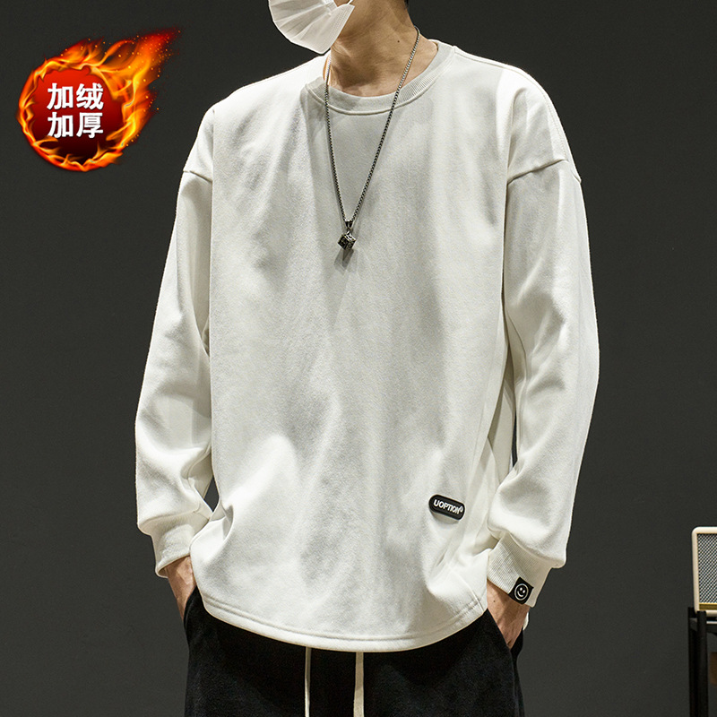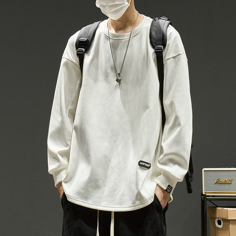 봄과 가을을위한 가을 소년 미국 스웨터를위한 헤비 코튼 긴팔 티셔츠 남성용 내복 화이트 베이스 셔츠