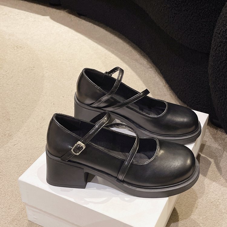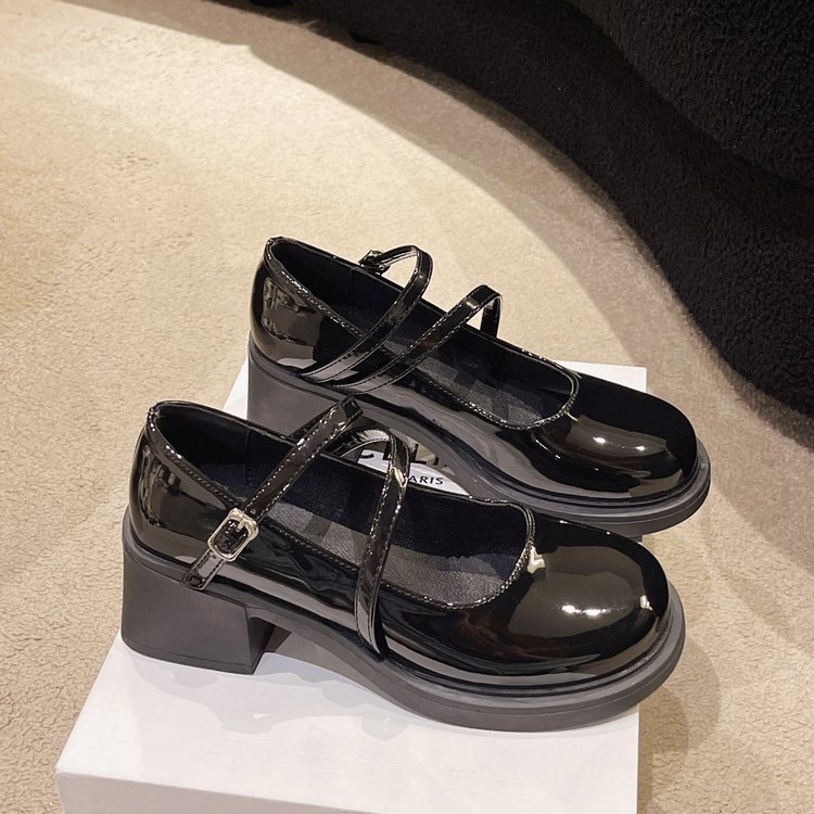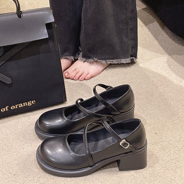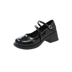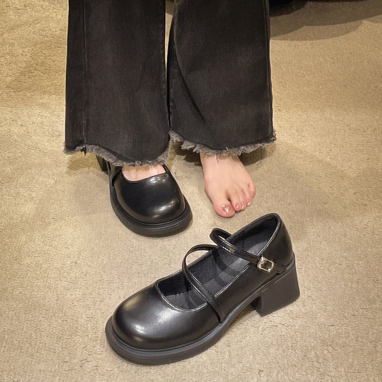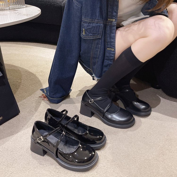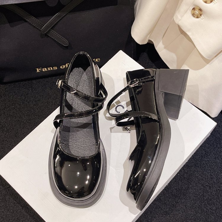 영국 스타일 얕은 입 청키 굽 가죽 신발 여성의 프랑스 두꺼운 단독 신발 2024 봄과 가을 새로운 하이힐 메리 제인 신발스토어 가기