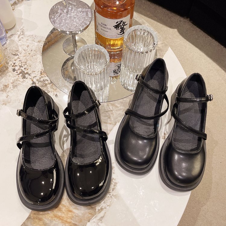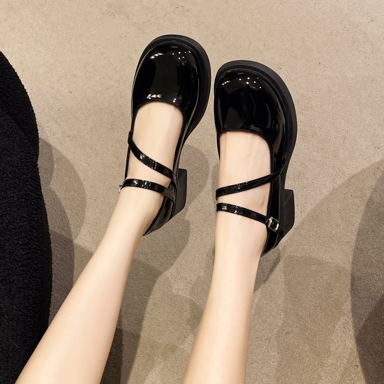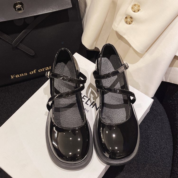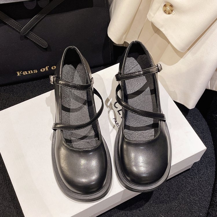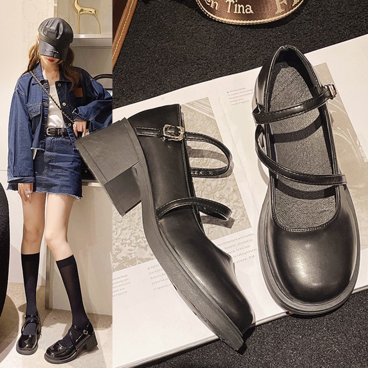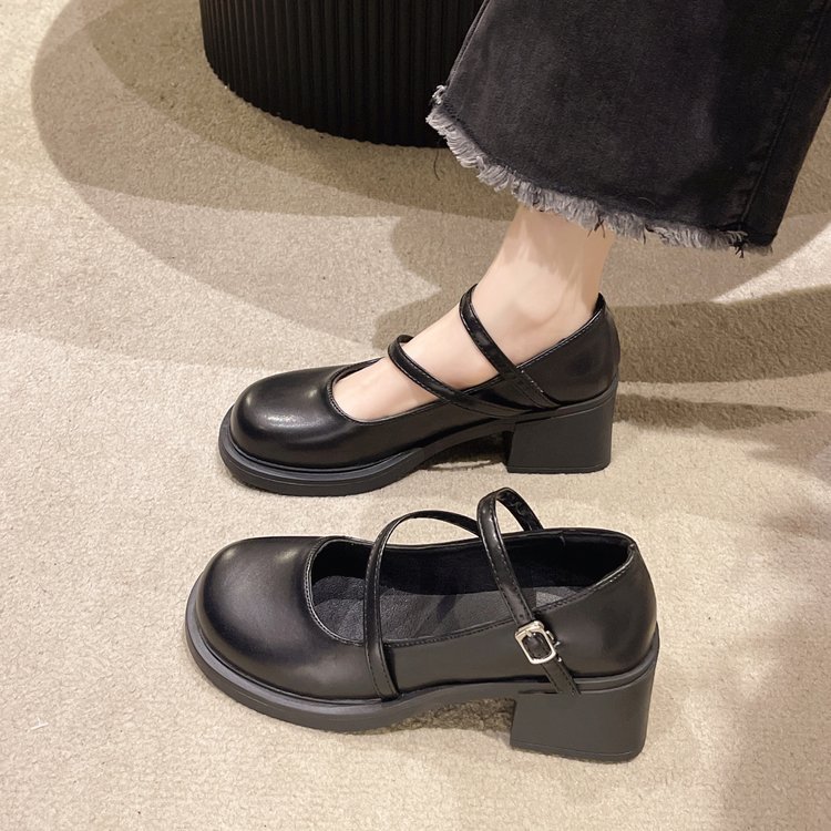 영국 스타일 얕은 입 청키 굽 가죽 신발 여성의 프랑스 두꺼운 단독 신발 2024 봄과 가을 새로운 하이힐 메리 제인 신발스토어 가기