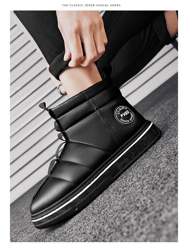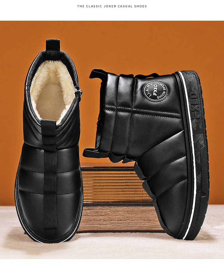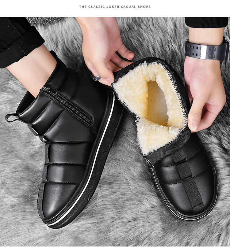 2024 새로운 도착 가죽 방수 스노우 부츠 남성 신발 사이드 지퍼 따뜻한 야외 부츠 기모 겨울면 신발