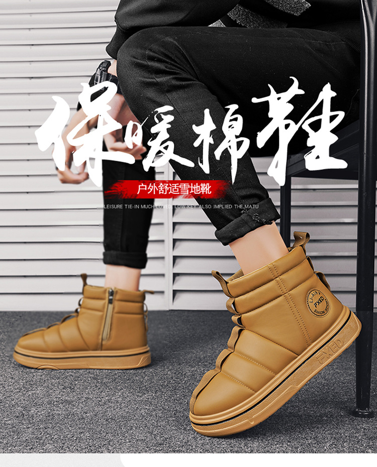 2024 새로운 도착 가죽 방수 스노우 부츠 남성 신발 사이드 지퍼 따뜻한 야외 부츠 기모 겨울면 신발스토어 가기