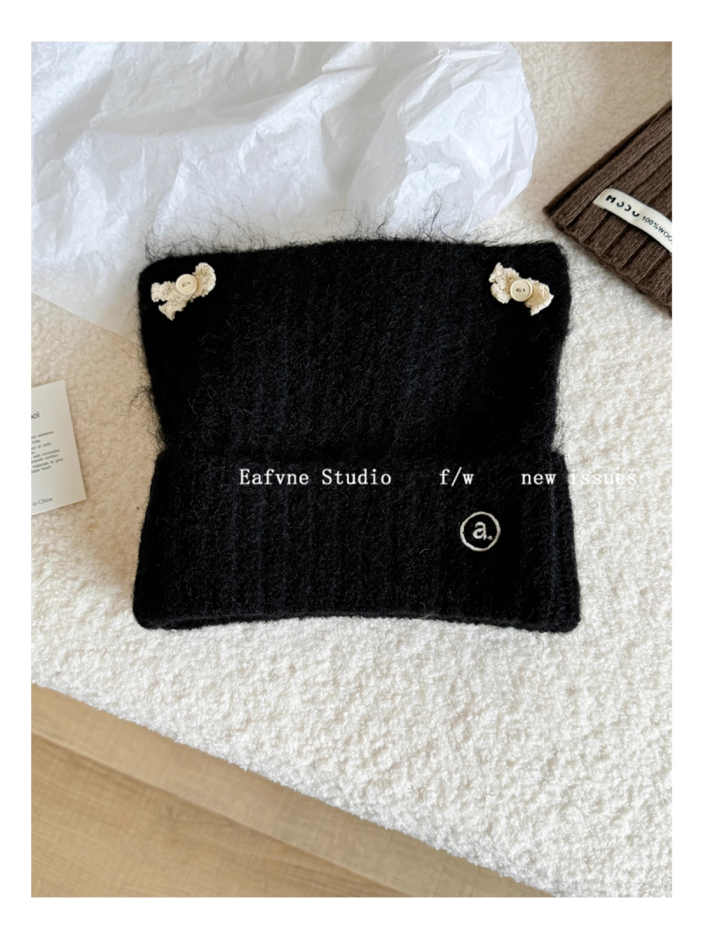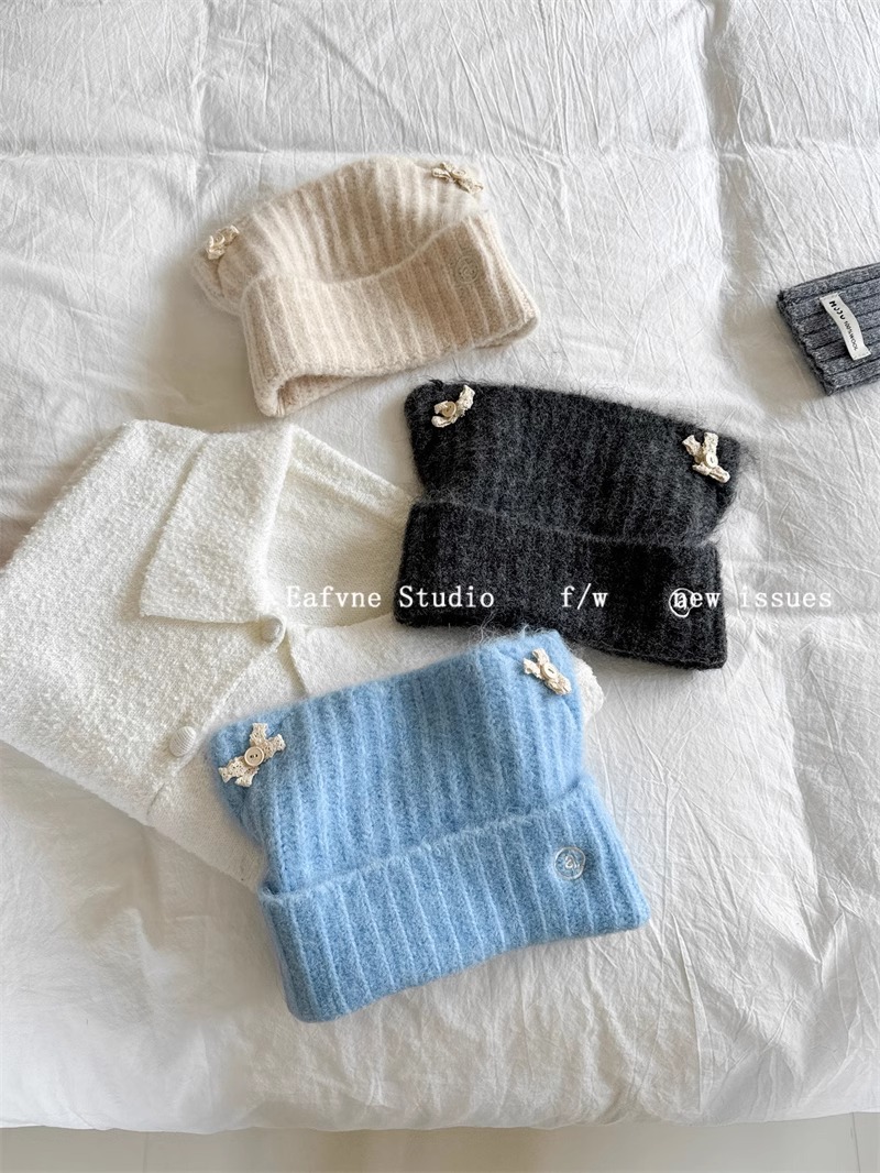 고양이 귀 니트 양모 모자 여성의 가을과 겨울 일본 스타일 레이스 버튼 활 얼굴 작은 따뜻한 방한 모자 차가운 모자스토어 가기