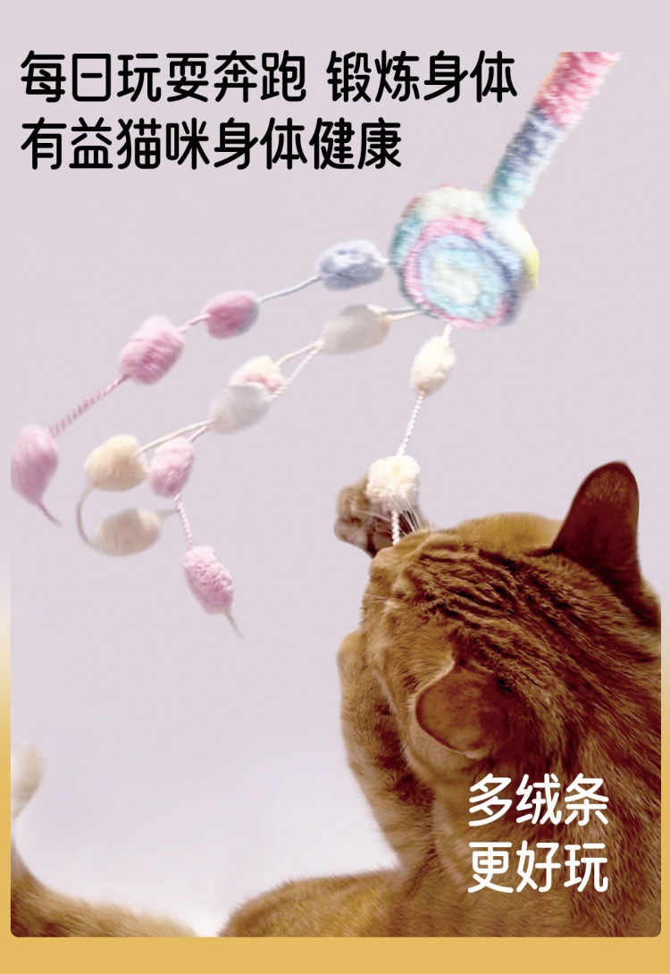 새로운 고양이 장난감 스노우 벨벳 롤리팝 고양이 스틱 인터랙티브 벨 고양이 장난감 애완 동물 용품 제조 업체 도매