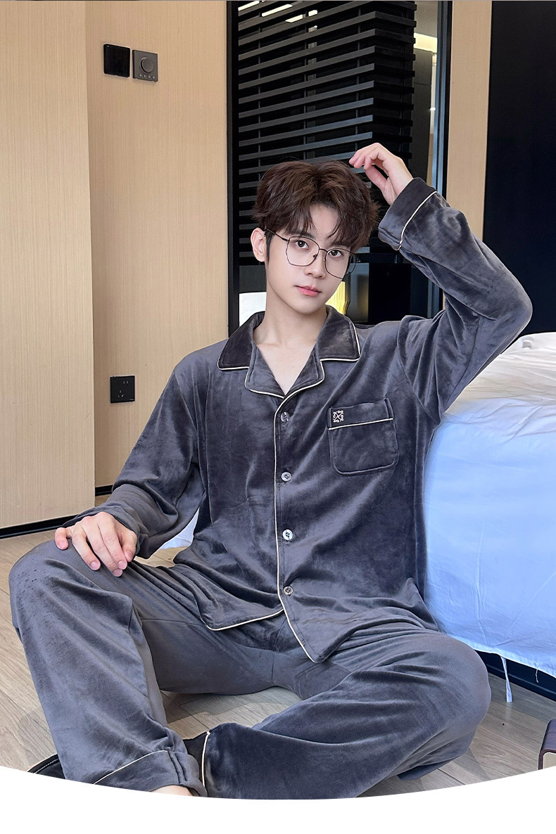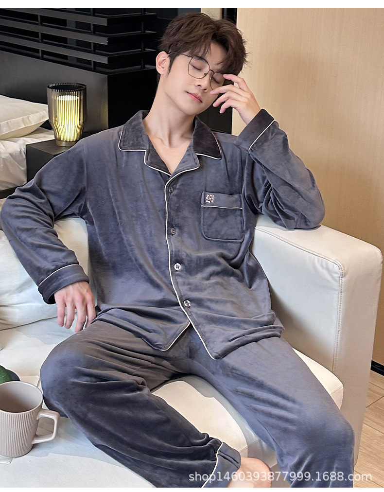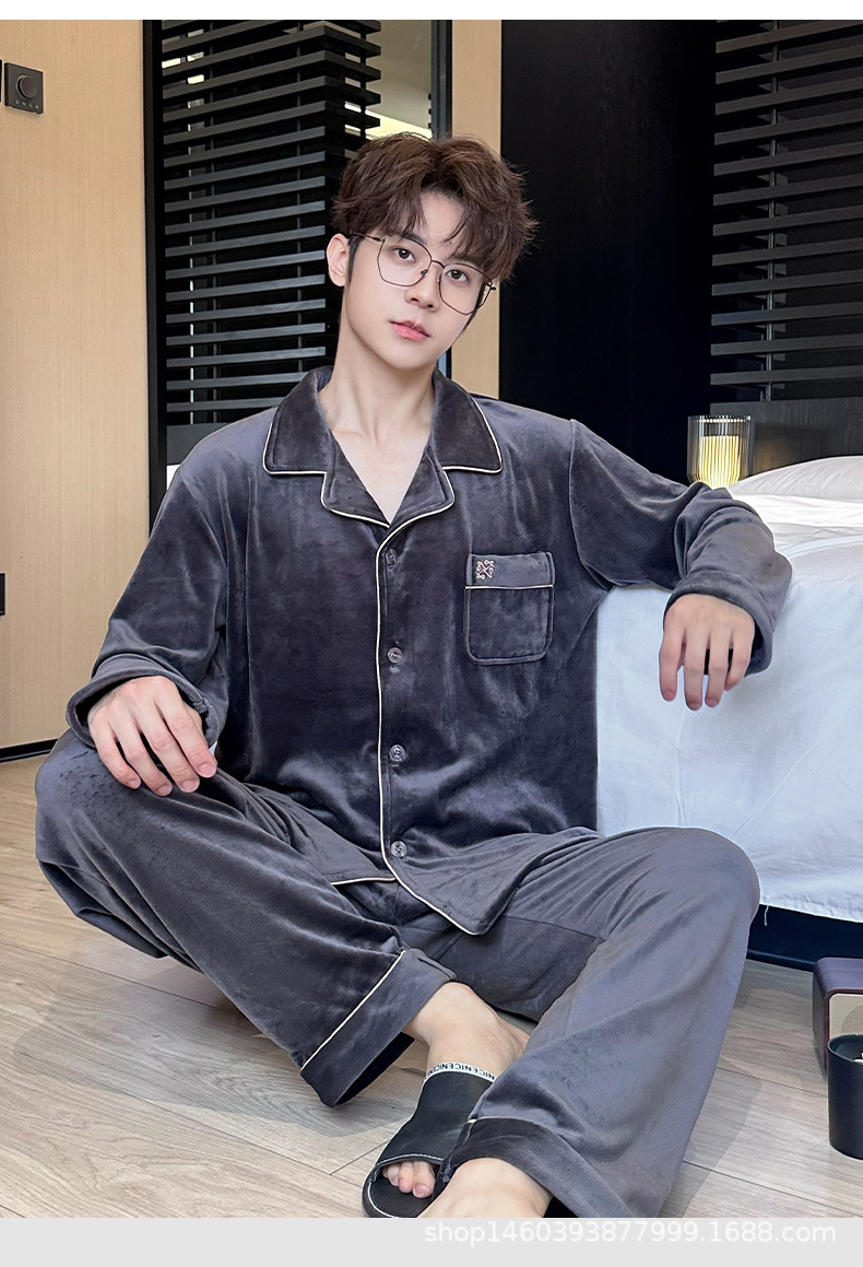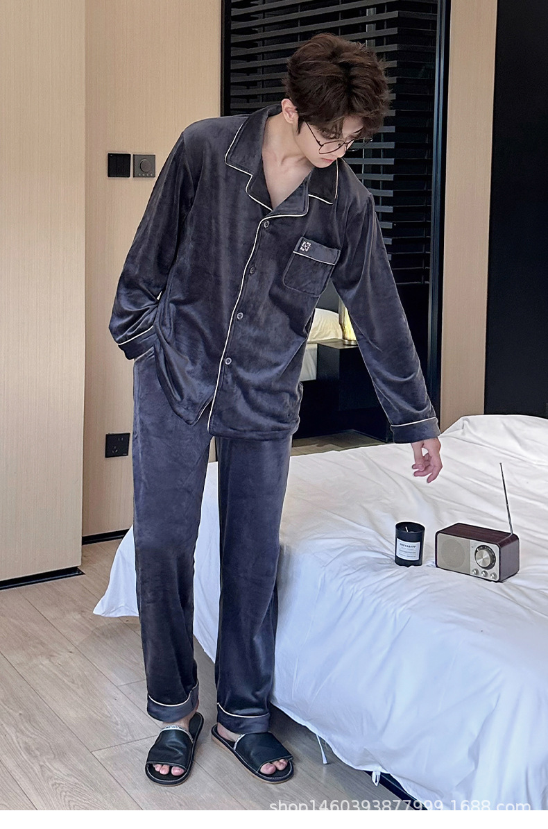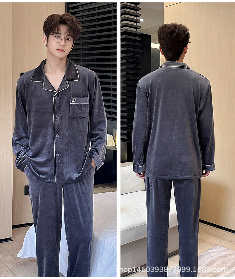 2024 가을과 겨울 새로운 섬 벨벳 잠옷 남성 떨리는 목소리 양면 벨벳 도매 소스 제조 업체 홈 의류스토어 가기