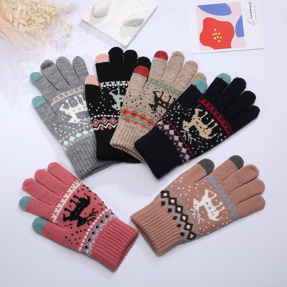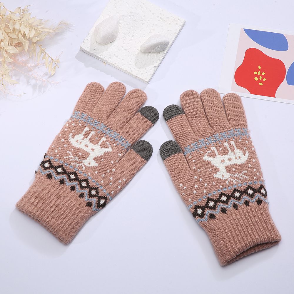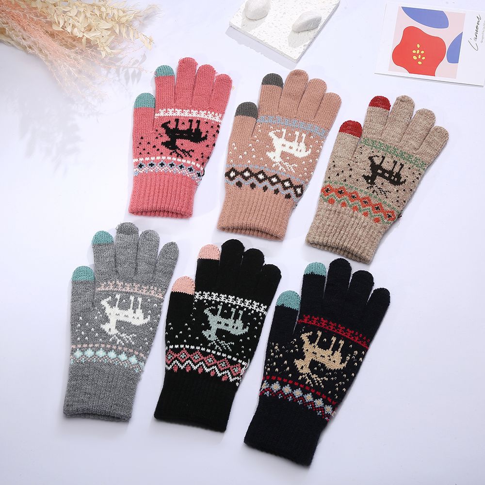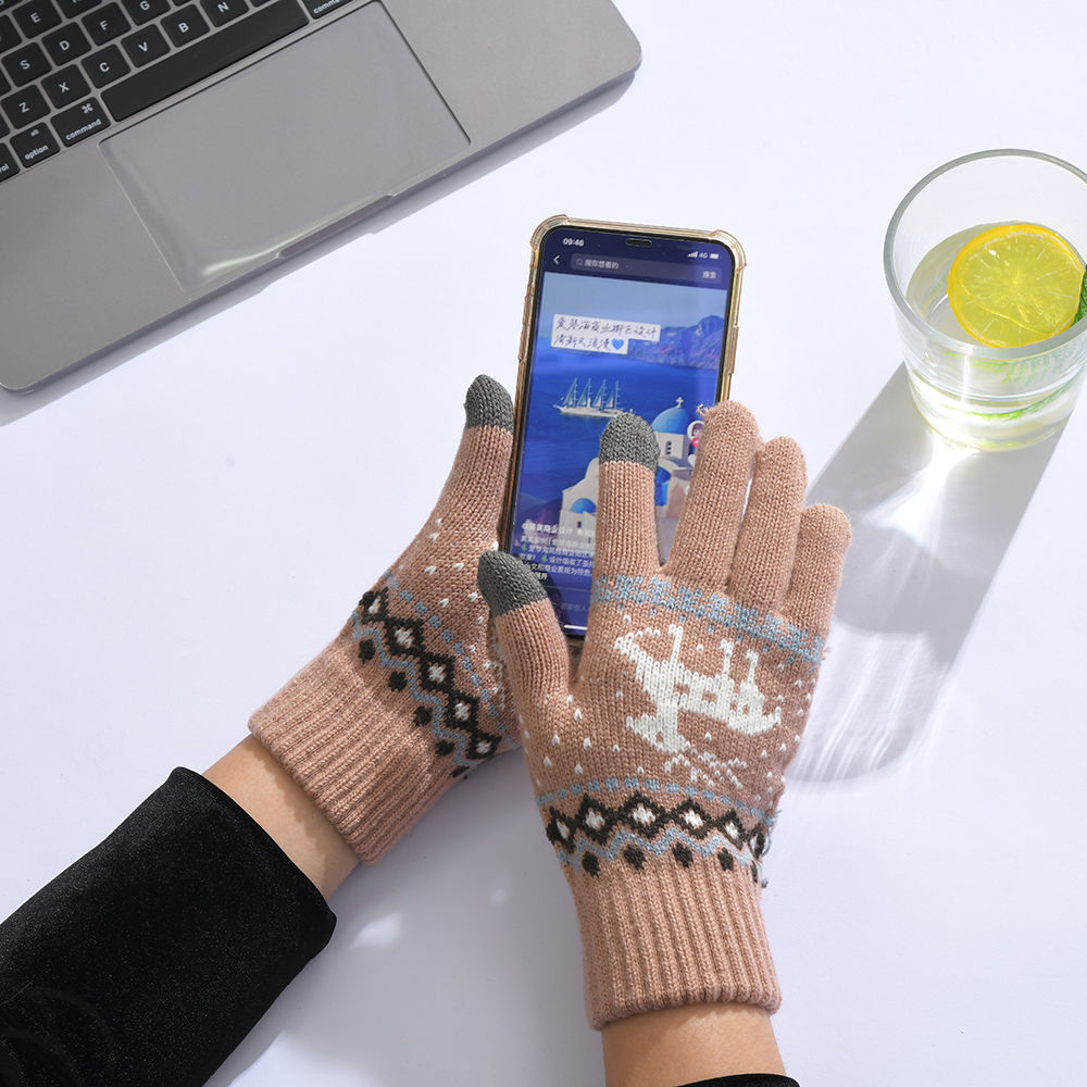 니트 터치 스크린 장갑 남녀 커플 장갑 가을과 겨울 한국 스타일 Fawn Jacquard 올 매치 콜드 방지 따뜻한 국경 장갑