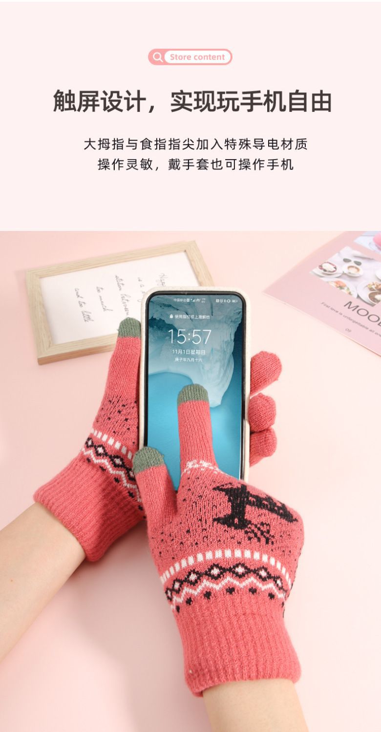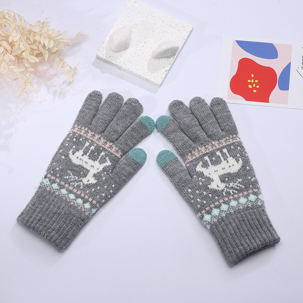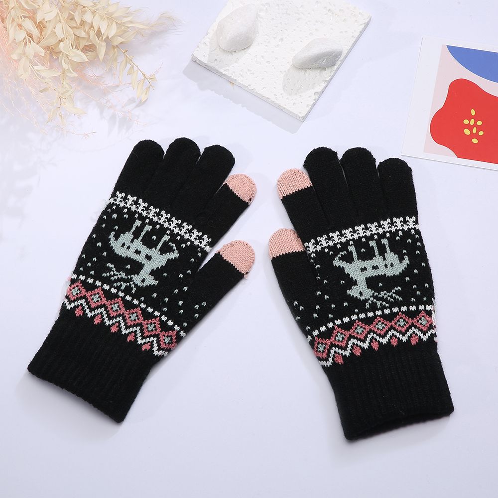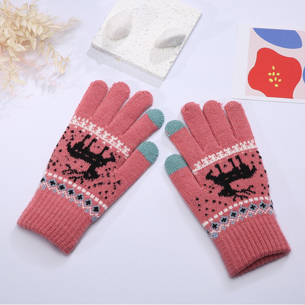 니트 터치 스크린 장갑 남녀 커플 장갑 가을과 겨울 한국 스타일 Fawn Jacquard 올 매치 콜드 방지 따뜻한 국경 장갑