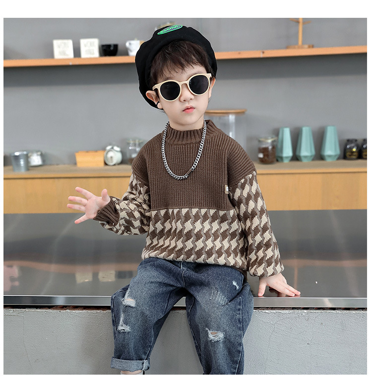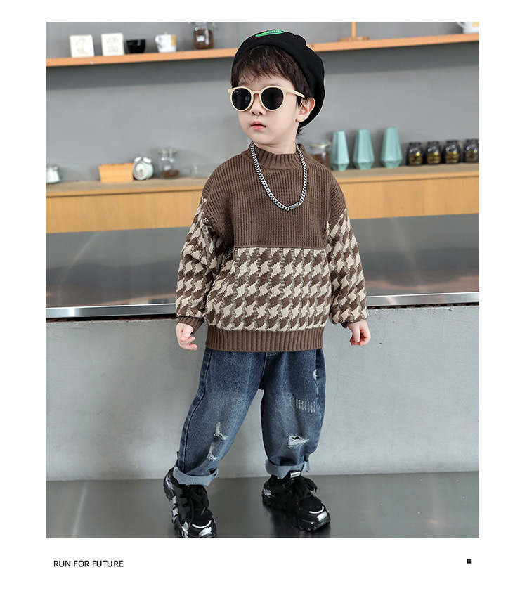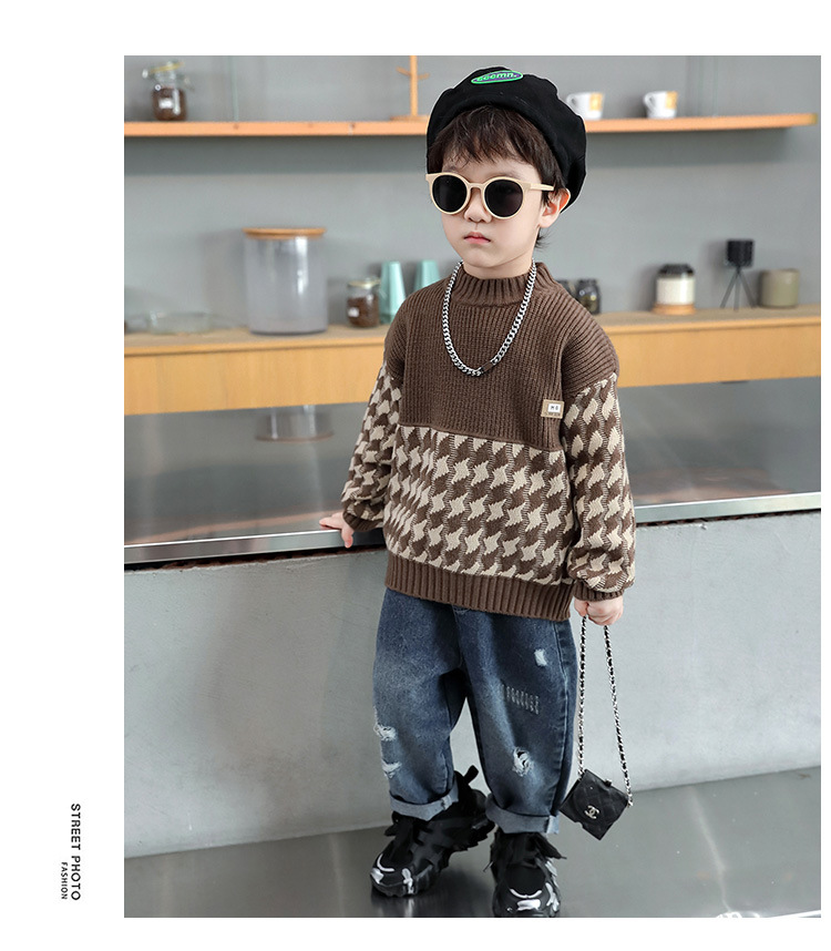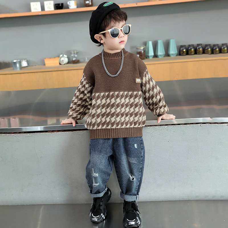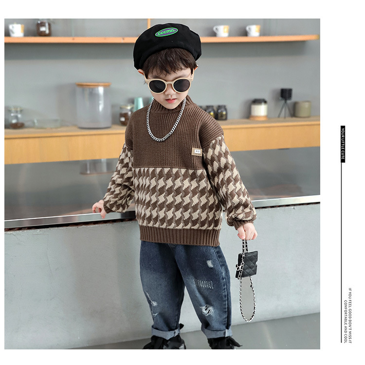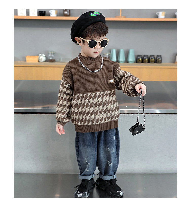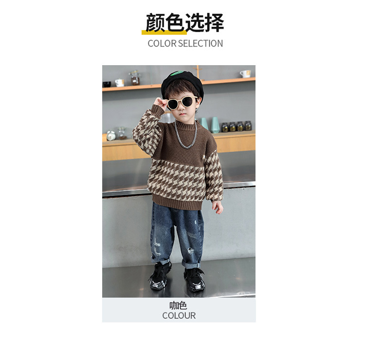 소년의 점진적 컬러 스웨터 가을과 겨울 2024 새로운 어린이 두꺼운 겨울 패션 소년의 둥근 목 니트 탑스토어 가기