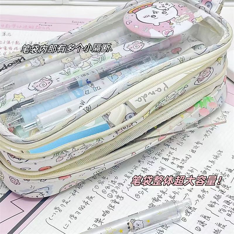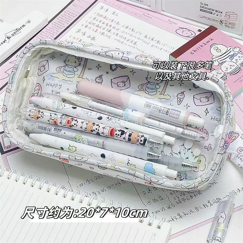 Ins Girl 대용량 KT 고양이 양면 통증 가방 투명 고 가치 연필 가방 학생 문구 보관 가방 연필 가방