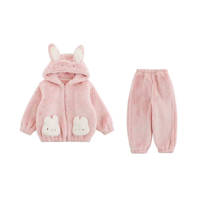 Qiuduo 귀여운 소녀 만화 작은 봉제 가정 의류 세트 2025 겨울 어린이 귀여운 따뜻한 잠옷 두꺼운스토어 가기