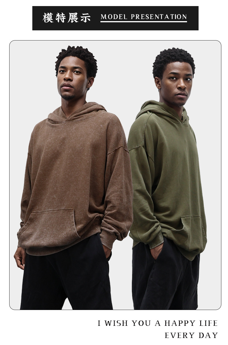 350g 빈티지 후드티 남성용 아메리칸 스타일 트렌디 브랜드 남성 후드티 루즈핏 레트로 워싱 빅 테리 후드티 가을 겨울스토어 가기