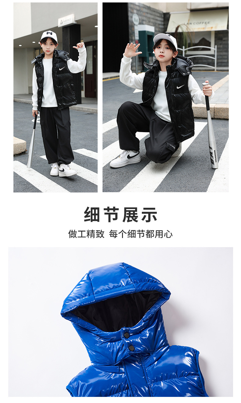 가을과 겨울을위한 트렌디 브랜드 어린이 조끼 중 큰 어린이 다운 코튼 조끼 두꺼운 따뜻한 소년 모자 세탁 자켓