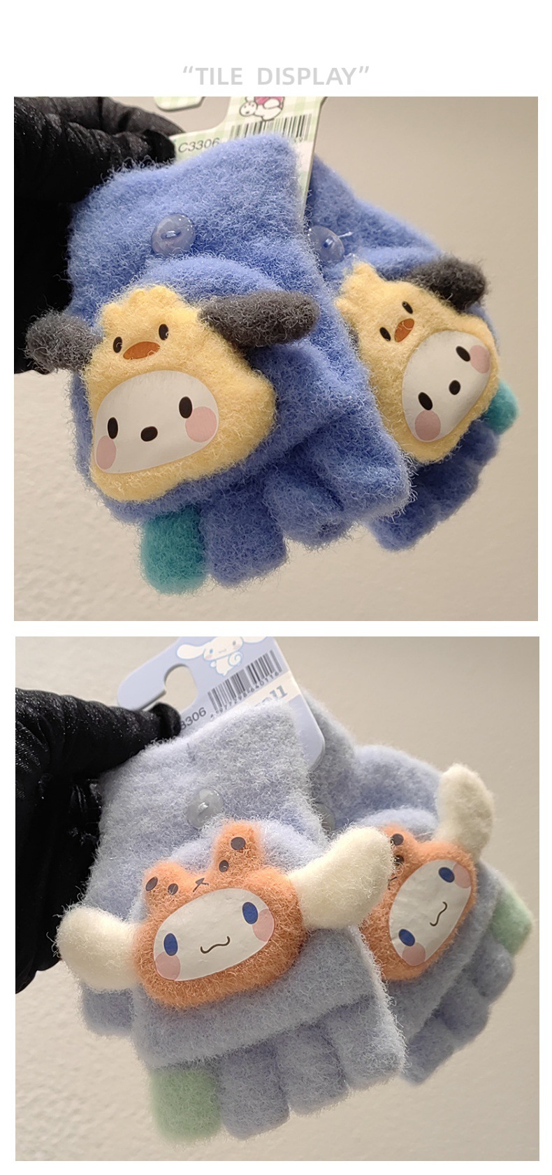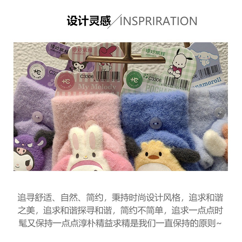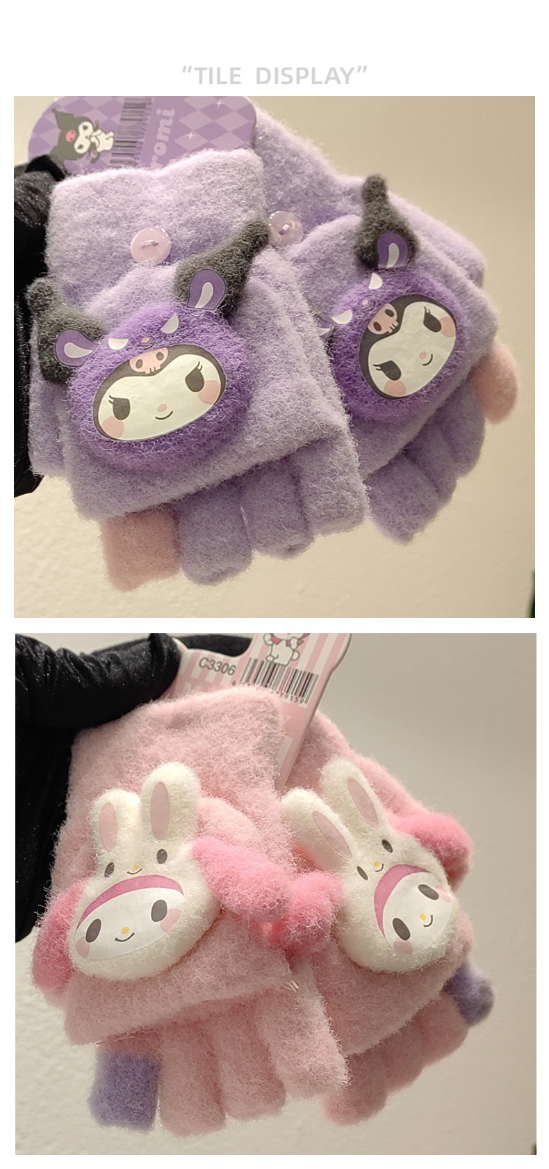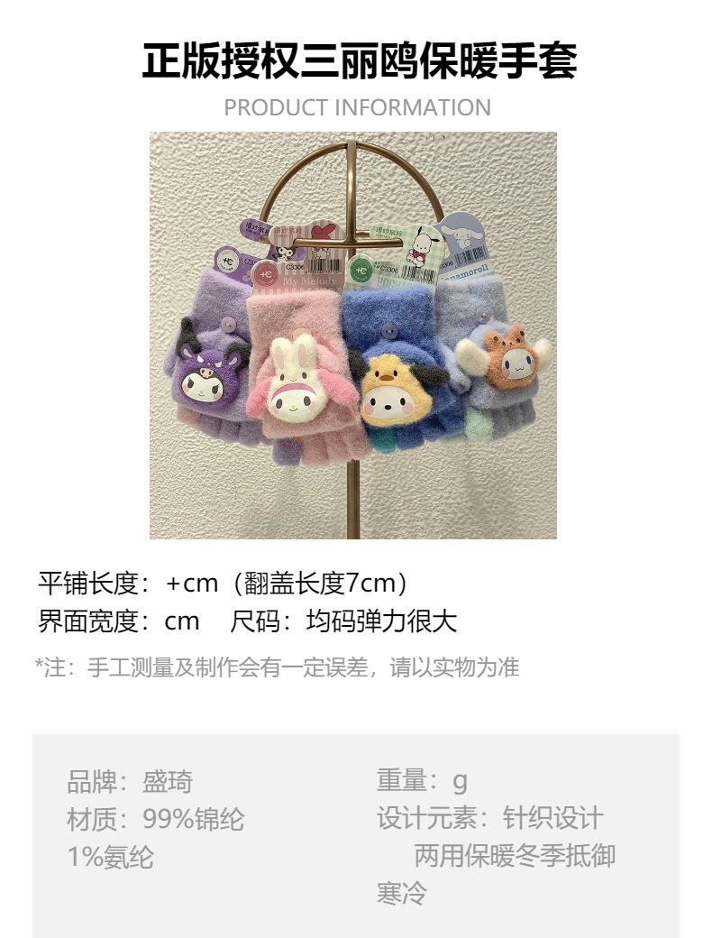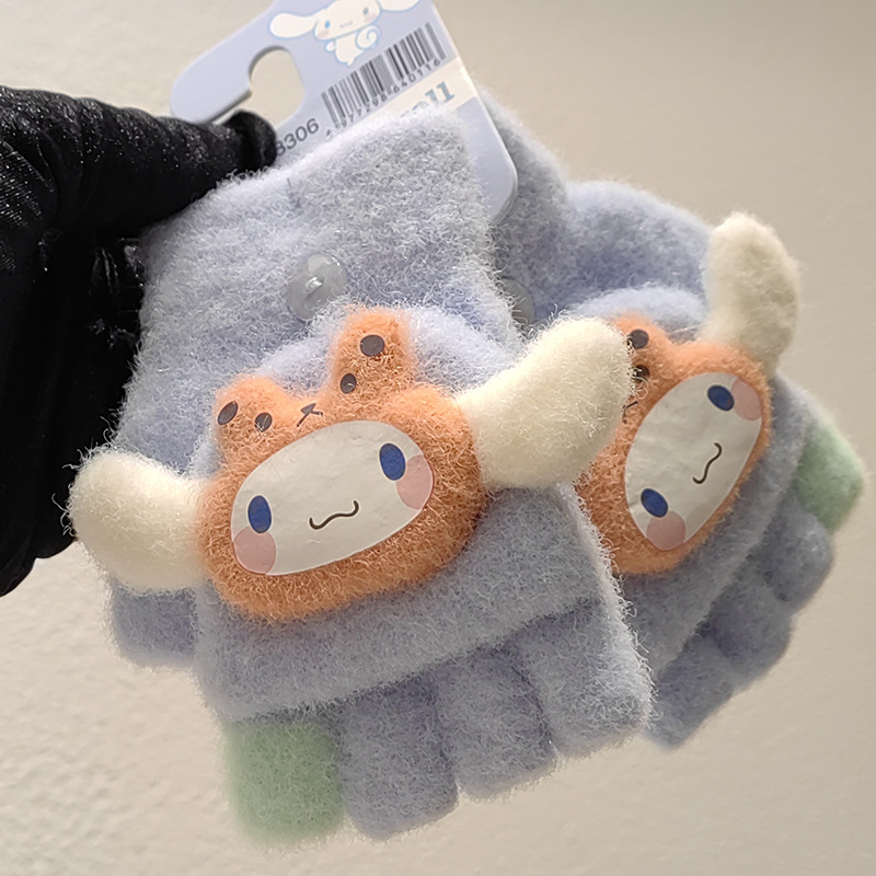 정품 Sanrio Kulomi 어린이 장갑 겨울 학생 하프 핑거 플립 커버 아기 쓰기 손가락 감기 방지 장갑스토어 가기