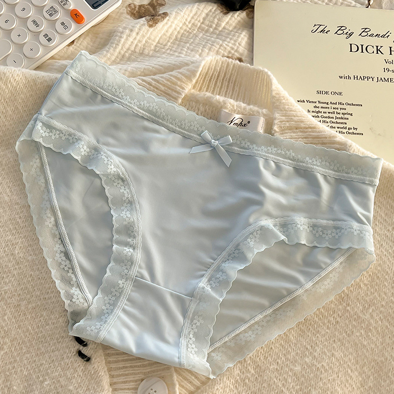 여름 초박형 아이스 실크 속옷 여성의 미드 웨이스트 활 통기성 섹시한 여자 일본 학생 브리프스토어 가기