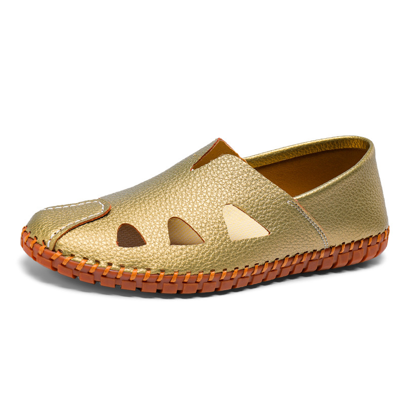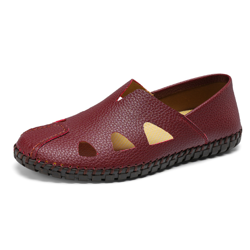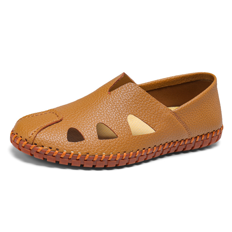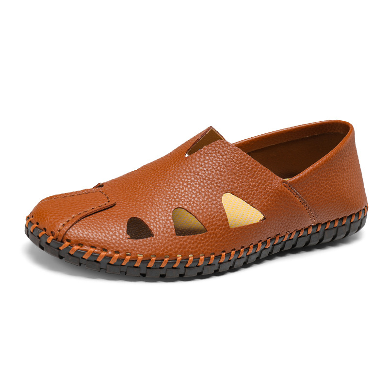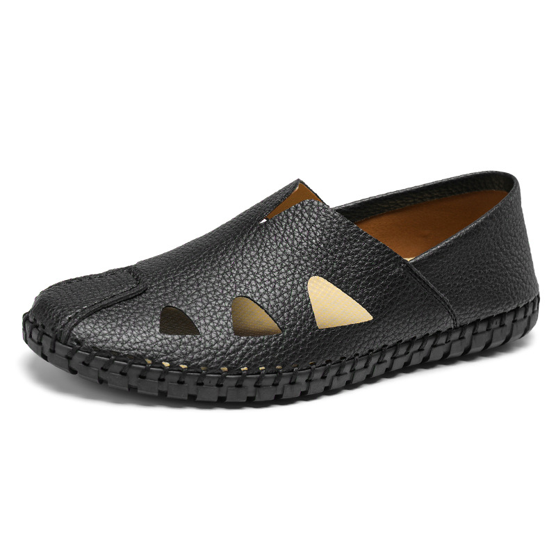 남성용 가죽 샌들 2024 여름 캐주얼 슈즈 남성용 가을 플랫 힐 솔리드 컬러 남성용 슈즈 크로스 보더 남성용 더그 슈즈 남성용