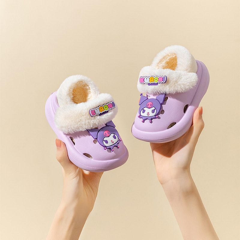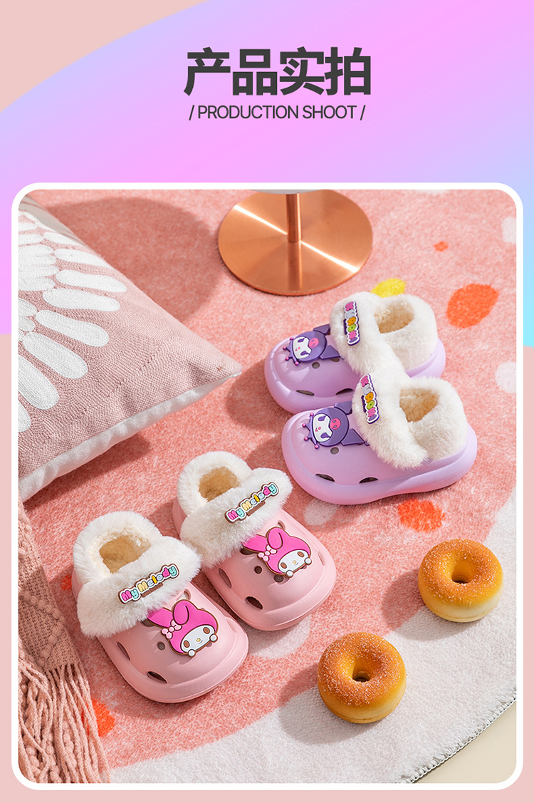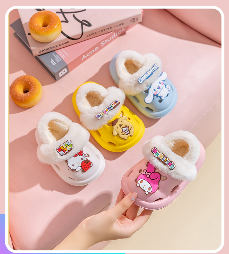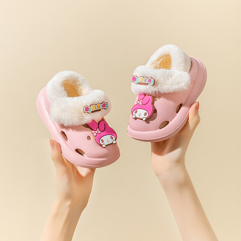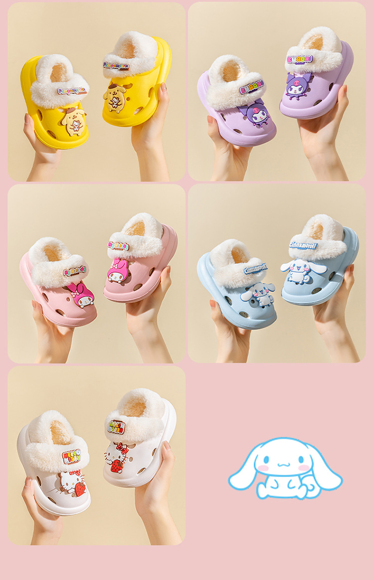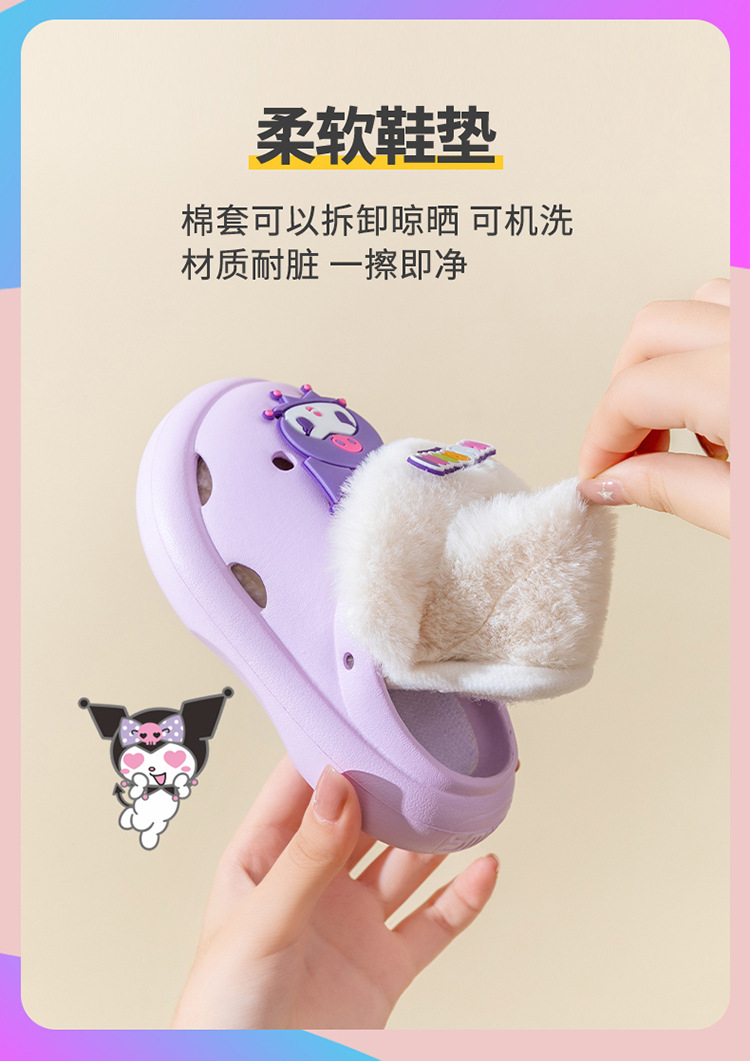 산리오 정품 겨울용 따뜻한 털 슬리퍼 탈부착 가능한 만화 정원 신발 가정용 캐주얼 어린이용 면 슬리퍼