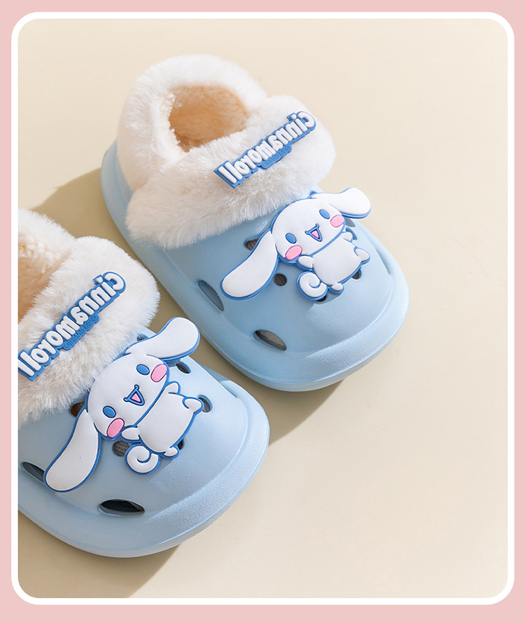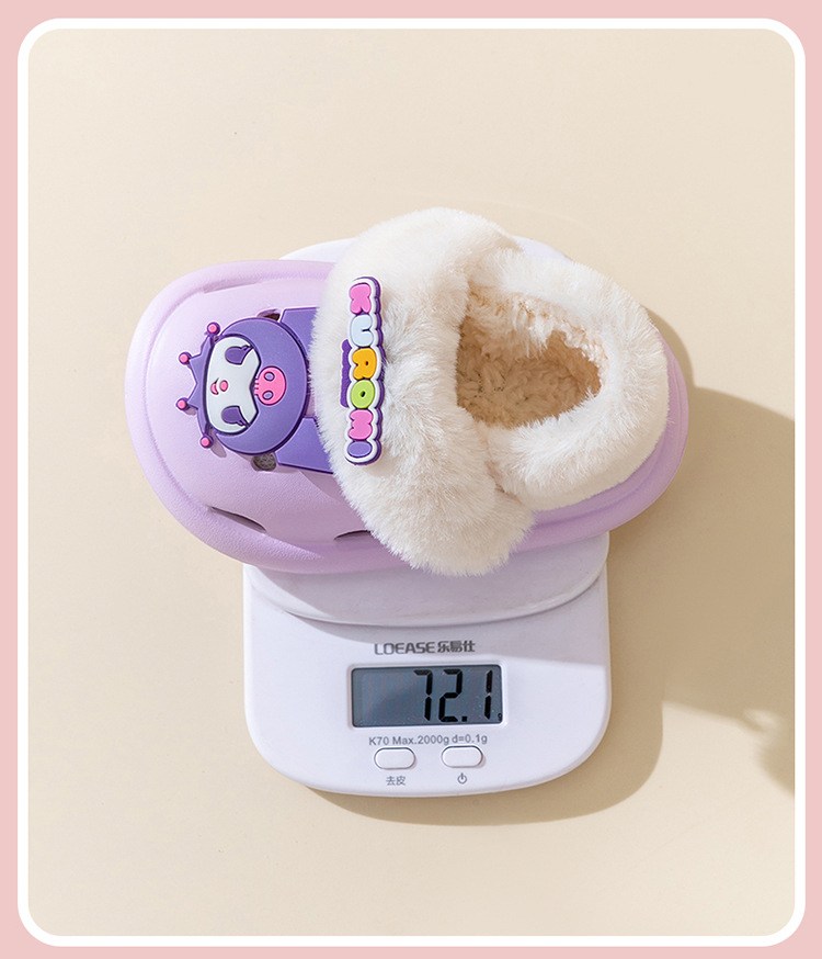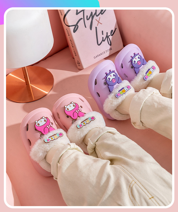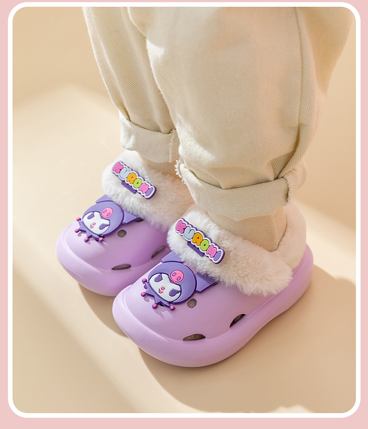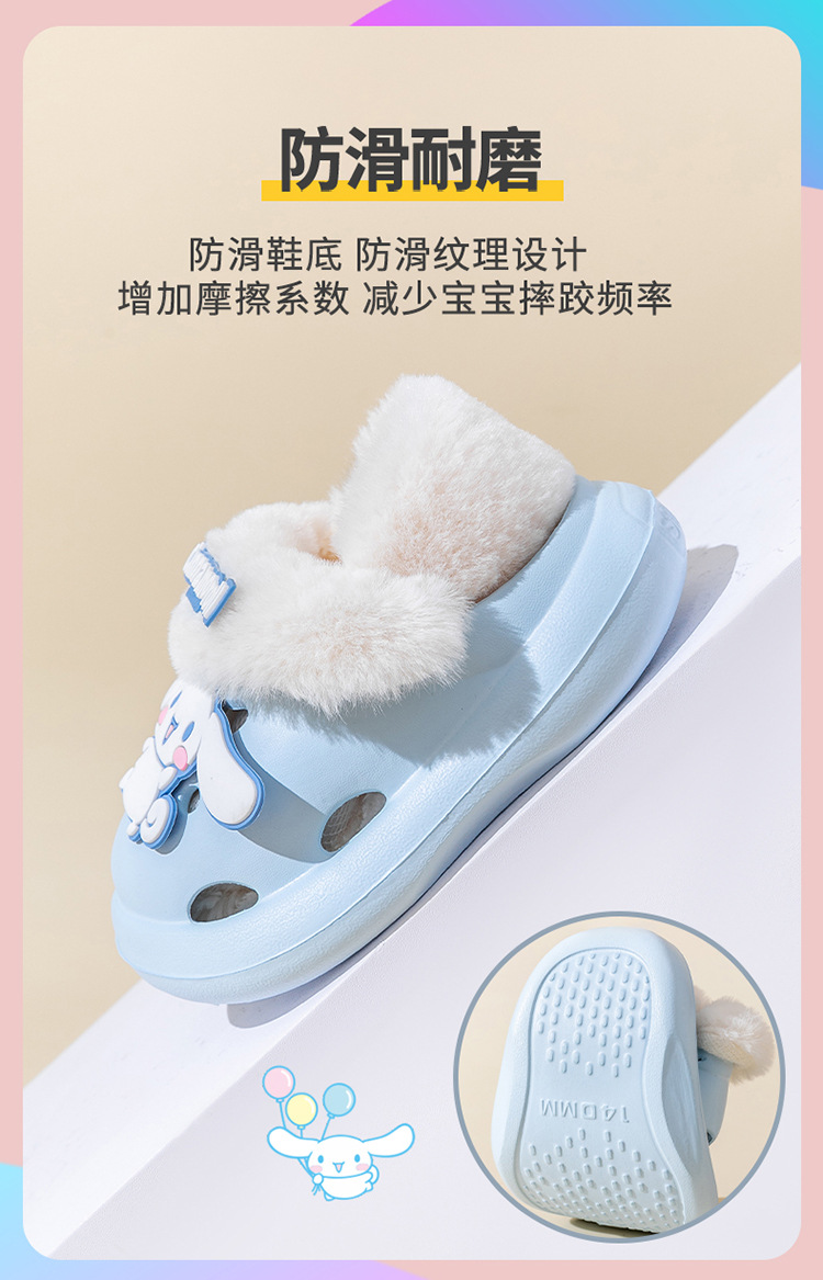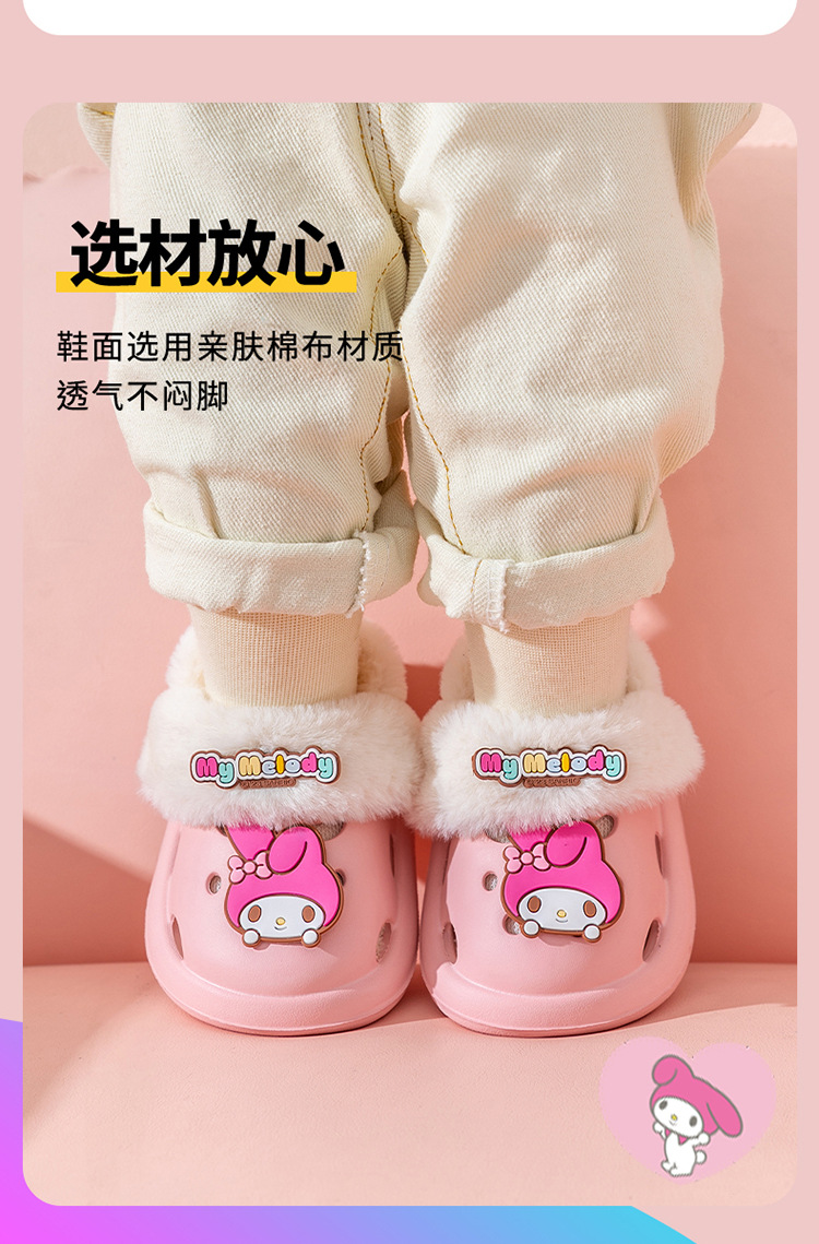 산리오 정품 겨울용 따뜻한 털 슬리퍼 탈부착 가능한 만화 정원 신발 가정용 캐주얼 어린이용 면 슬리퍼
