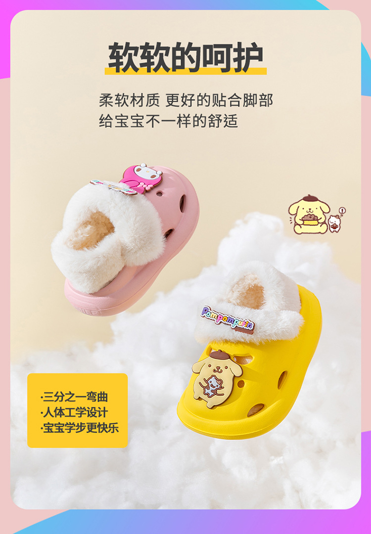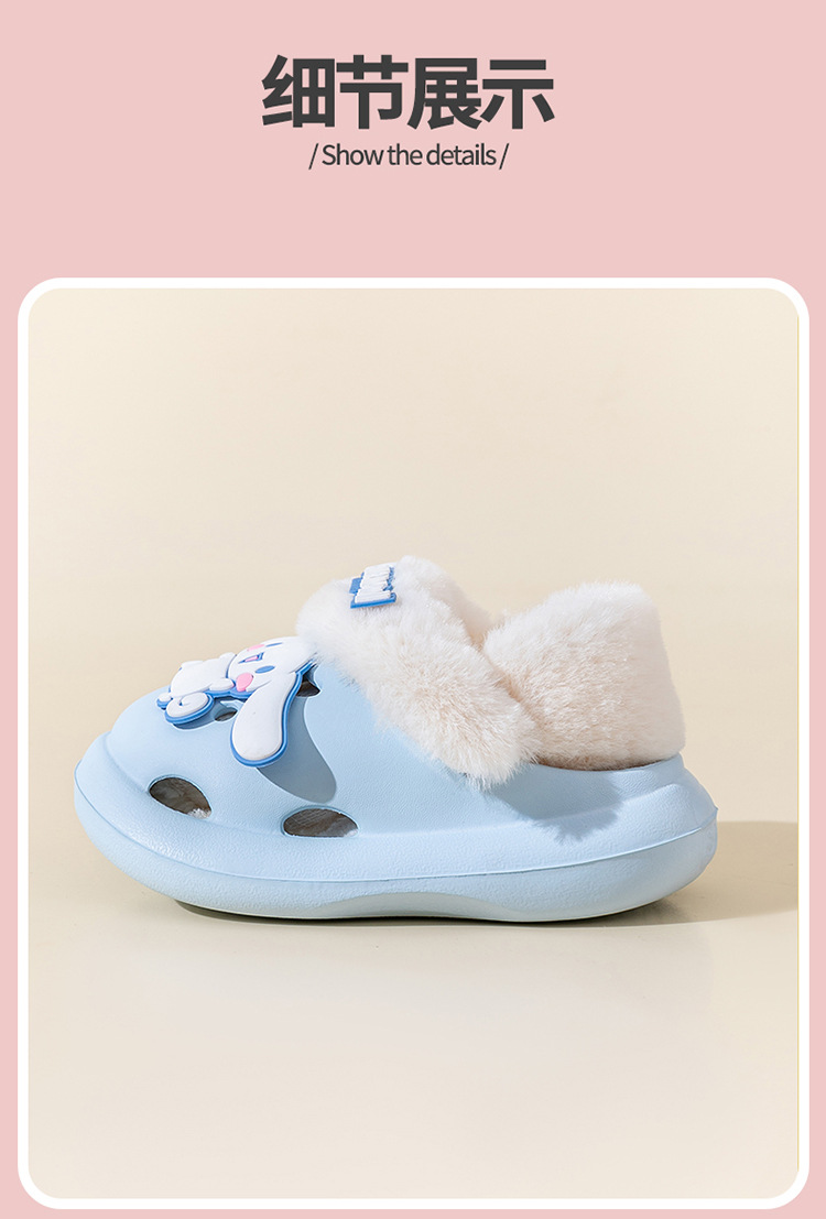 산리오 정품 겨울용 따뜻한 털 슬리퍼 탈부착 가능한 만화 정원 신발 가정용 캐주얼 어린이용 면 슬리퍼스토어 가기