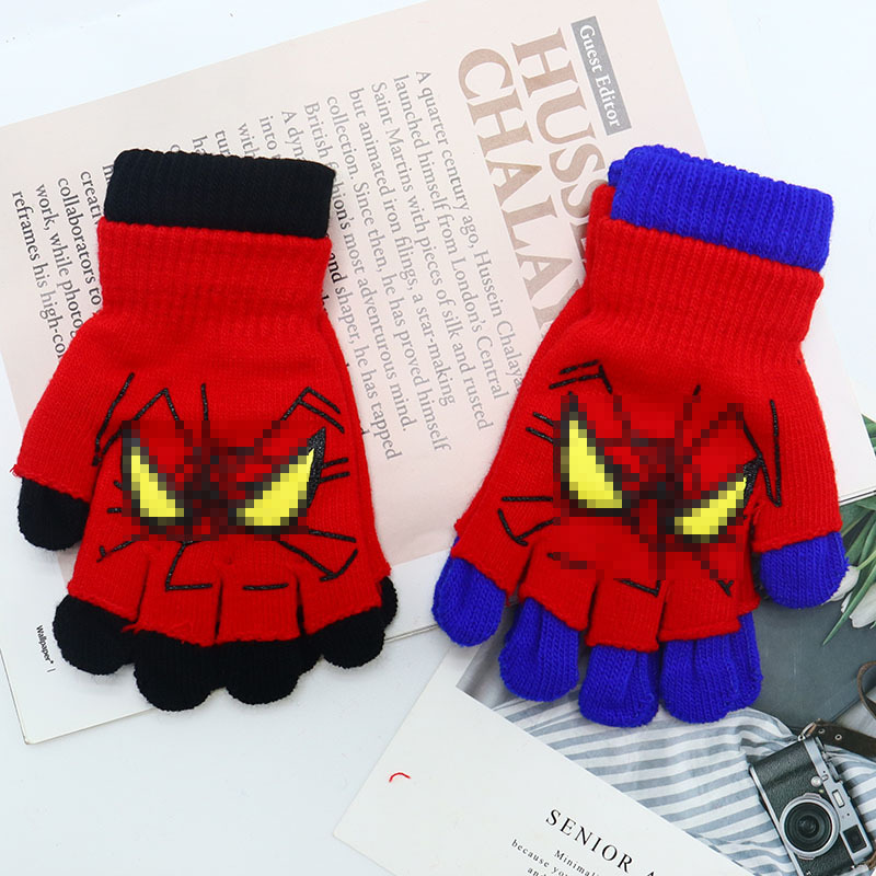 가을과 겨울 어린이 장갑 따뜻한 두꺼운 소년 애니메이션 여성 아기 2 조각 니트 울 더블 레이어 5 손가락 세트스토어 가기