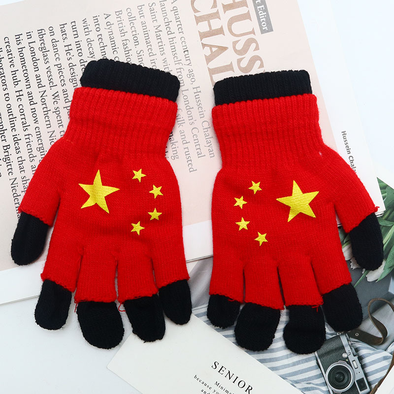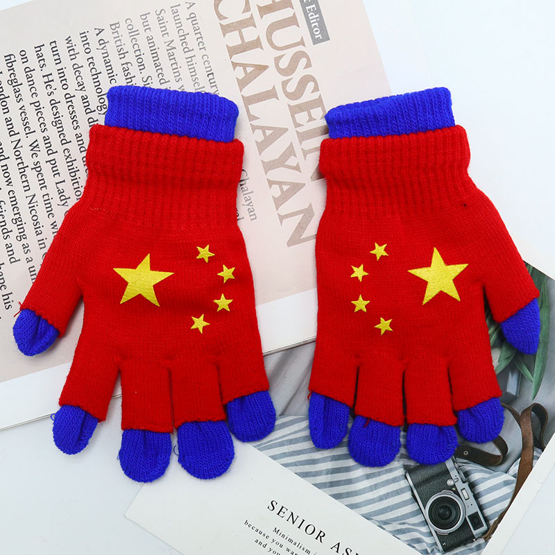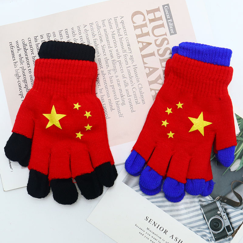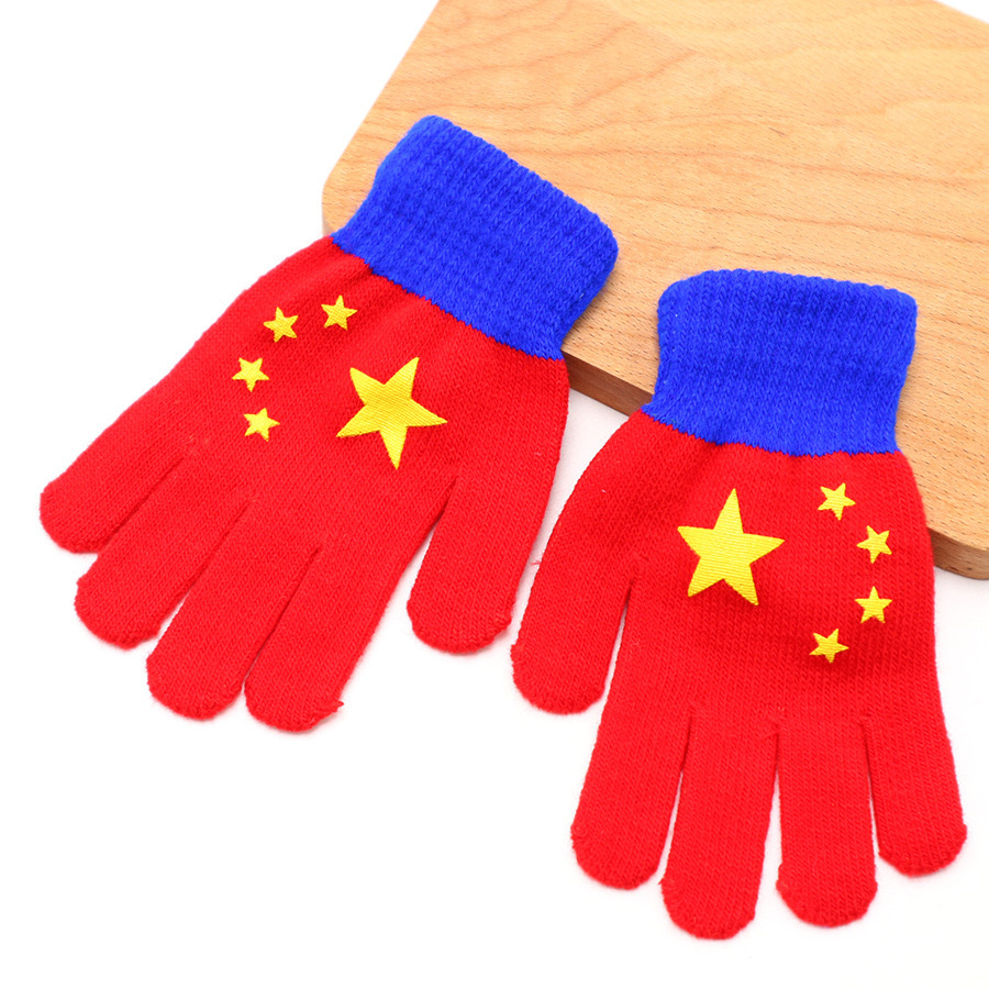 가을과 겨울 어린이 장갑 따뜻한 두꺼운 소년 애니메이션 여성 아기 2 조각 니트 울 더블 레이어 5 손가락 세트