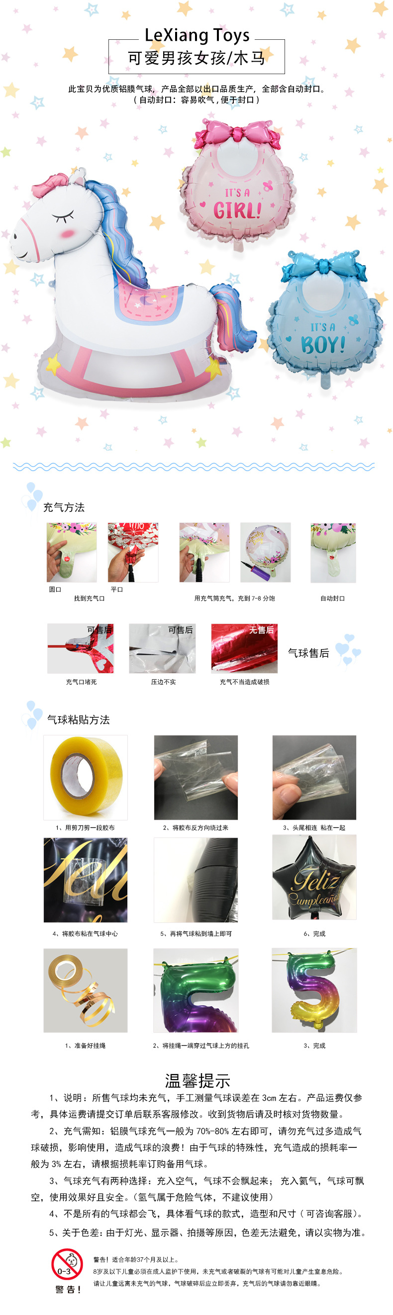 MECRLA 수출용 베이비 시리즈 알루미늄 필름 풍선 BABY 어린이 파티 장식 사진 소품 턱받이 목마스토어 가기