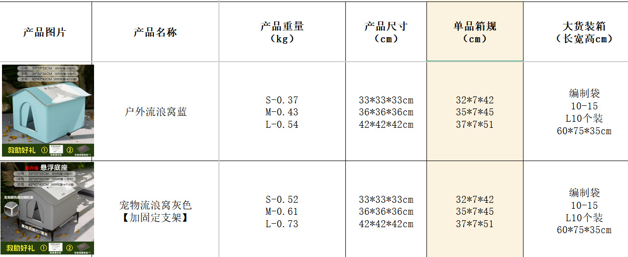 流浪窝灰色小号包装尺寸:32*7*42cm 重量:0.37kg