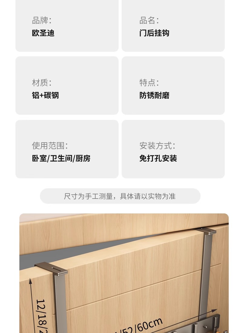 • 야바이 확장 8개 후크 [도어 두께 3.5~6.5cm에 적용 가능]
