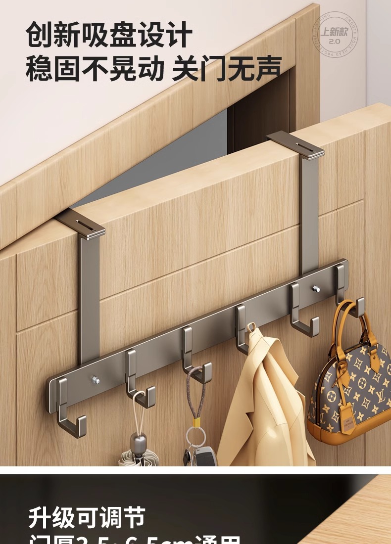 • 야바이 확장 6개 후크 [도어 두께 3.5~6.5cm에 적용 가능]
