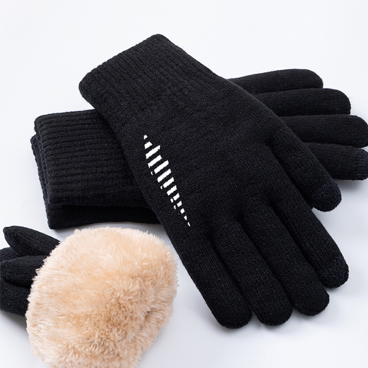장갑 남자의 가을과 겨울 남자와 여자의 두꺼운 따뜻한 감기 야외 승마 터치 스크린 더블 레이어 기모 플러스 사이즈 장갑