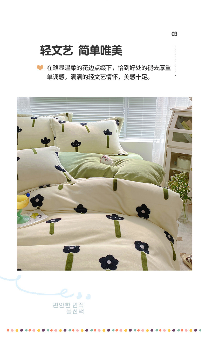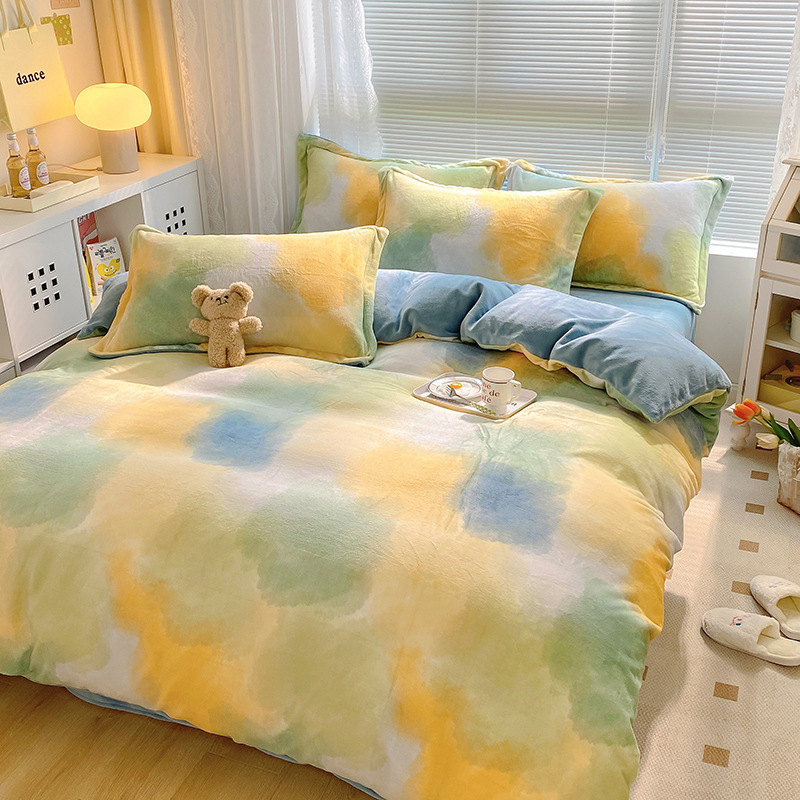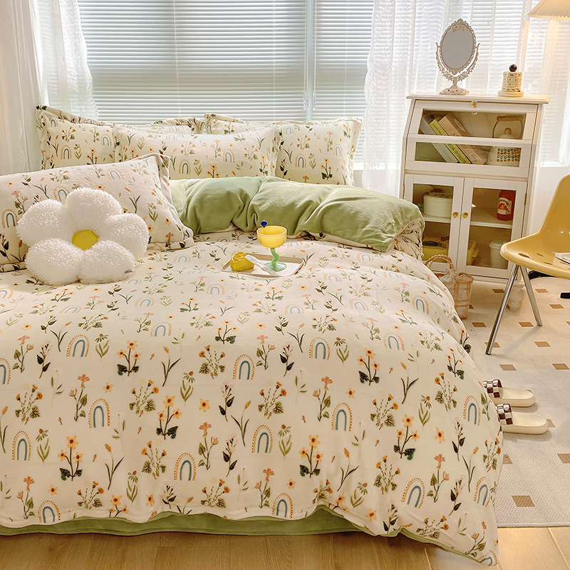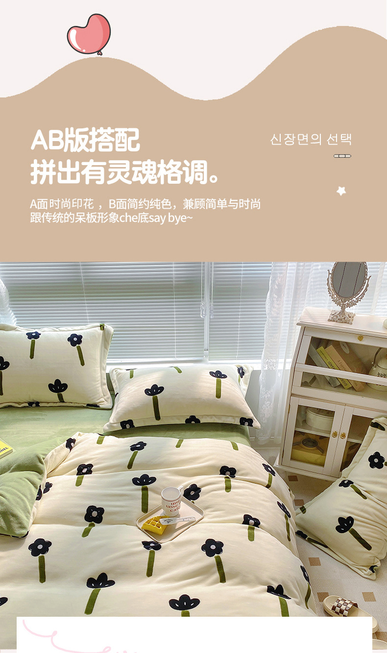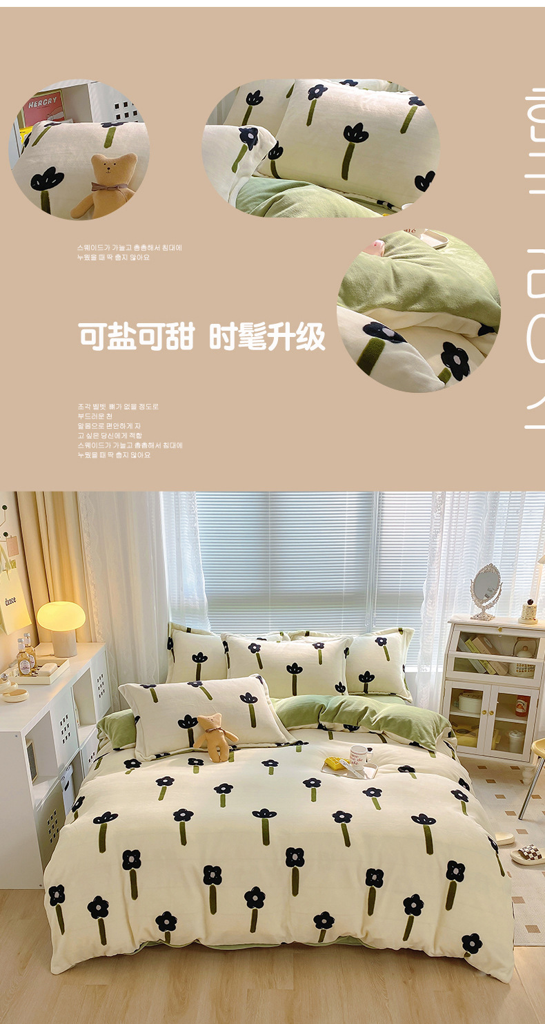 밀크 벨벳 4 피스 산호 양털 퀼트 커버 시트 겨울 따뜻한 플란넬 팔레 인 기숙사 침대 3 ~ 4 개