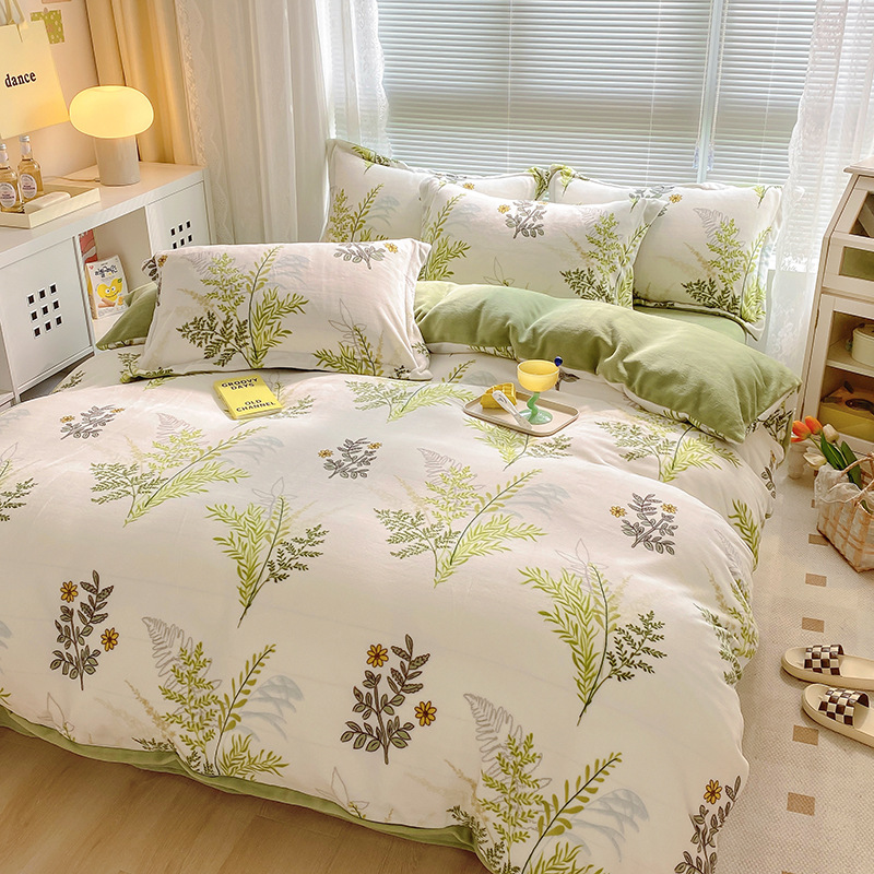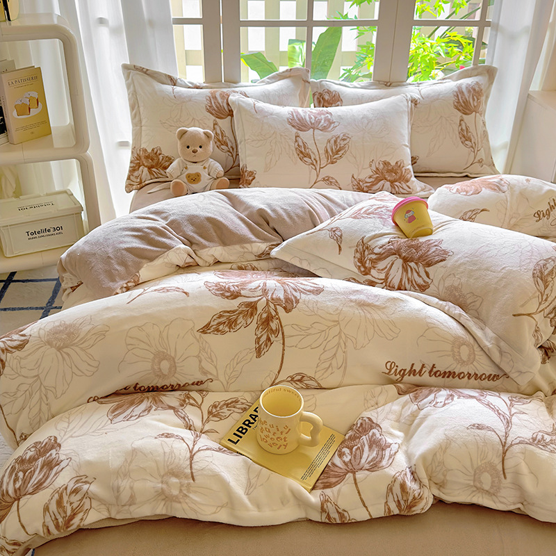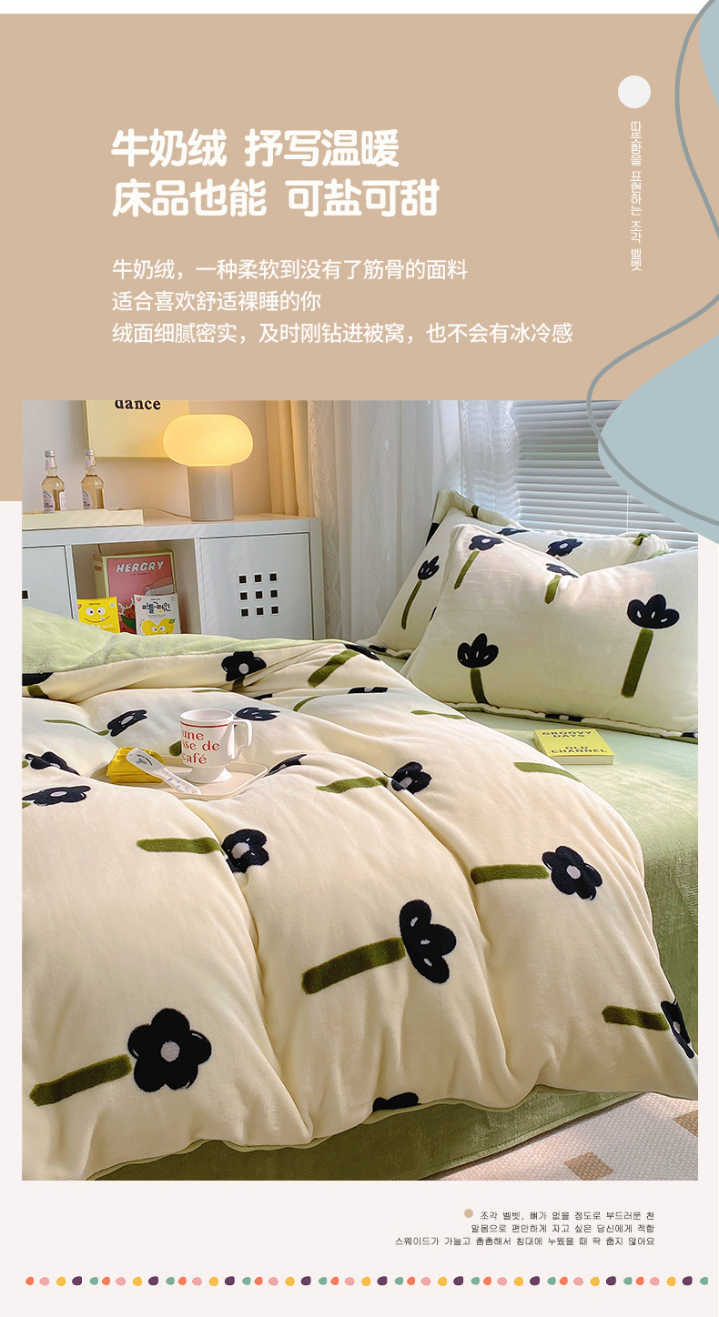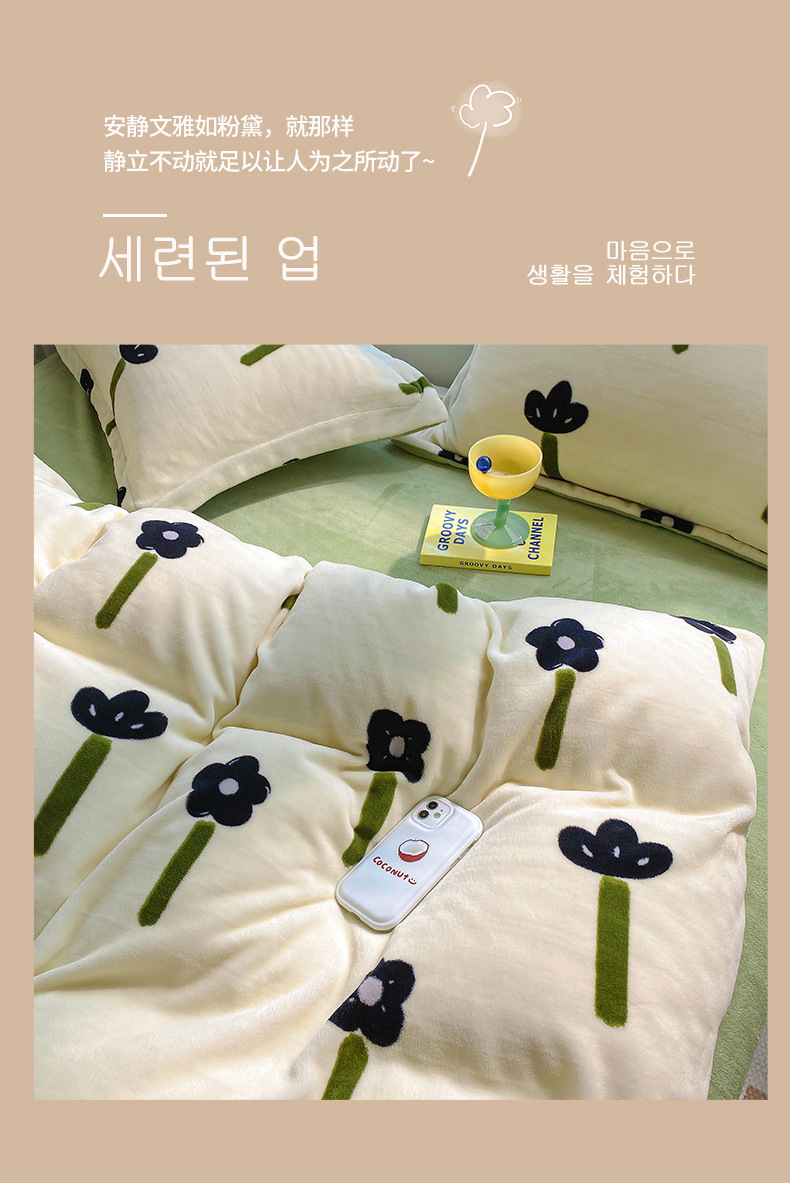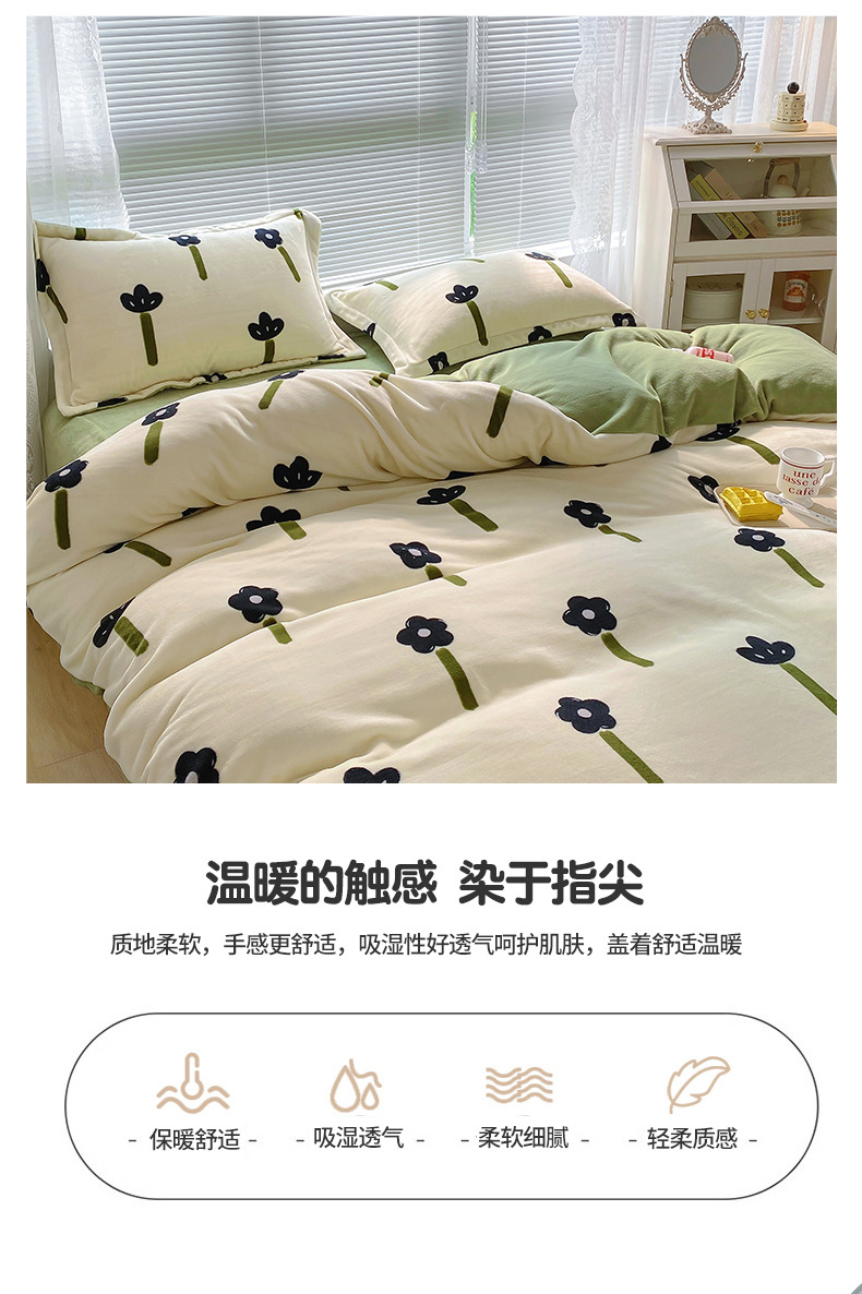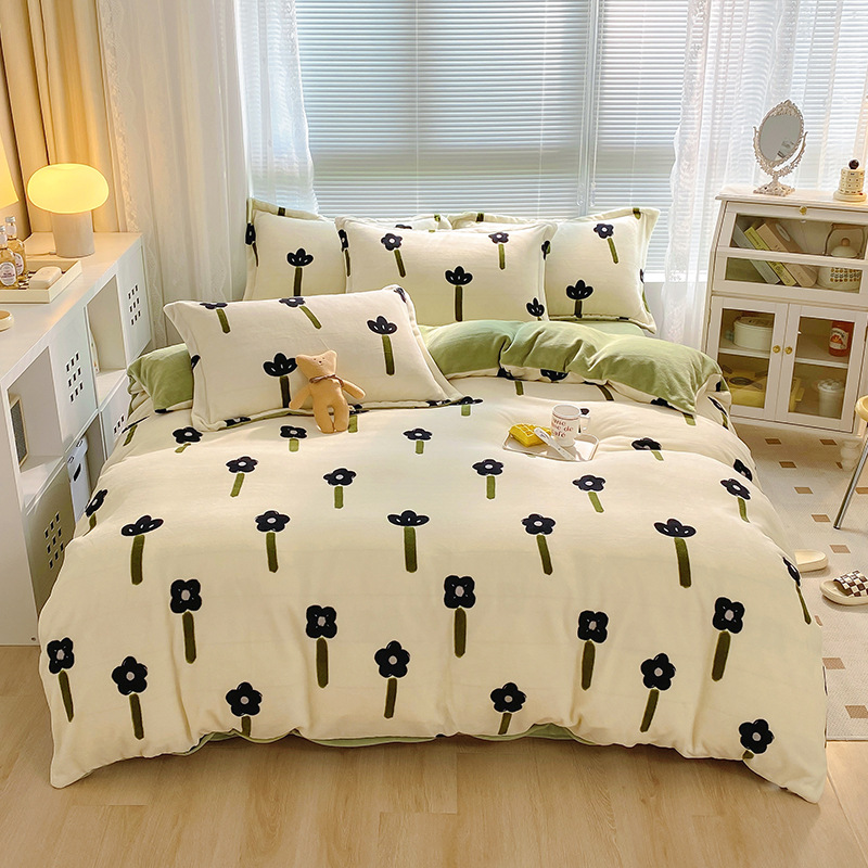 밀크 벨벳 4 피스 산호 양털 퀼트 커버 시트 겨울 따뜻한 플란넬 팔레 인 기숙사 침대 3 ~ 4 개