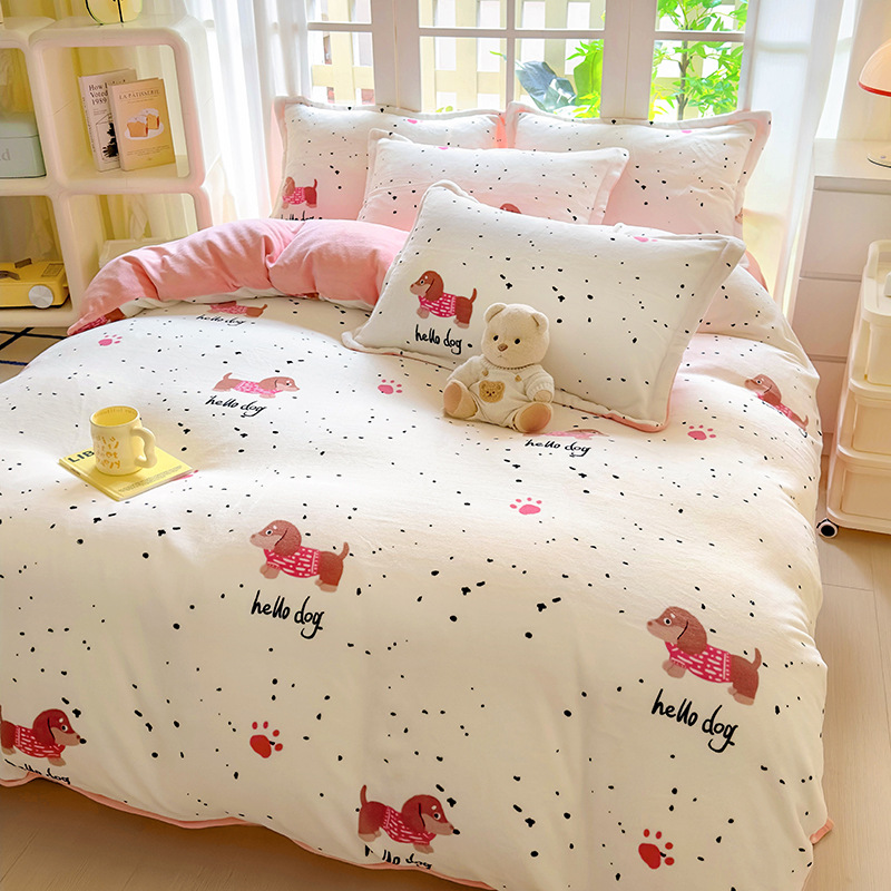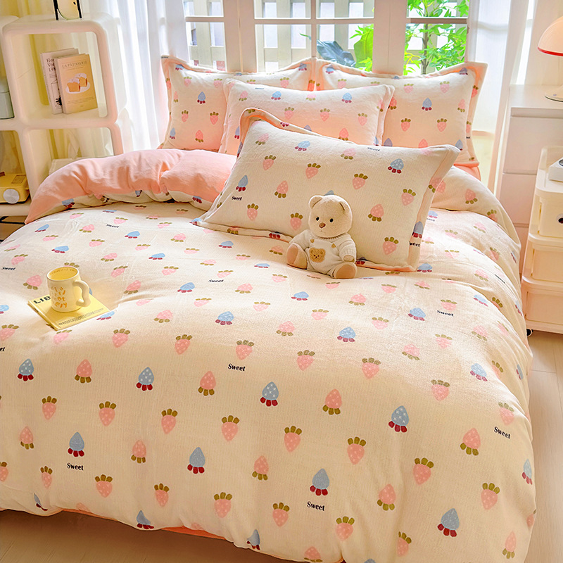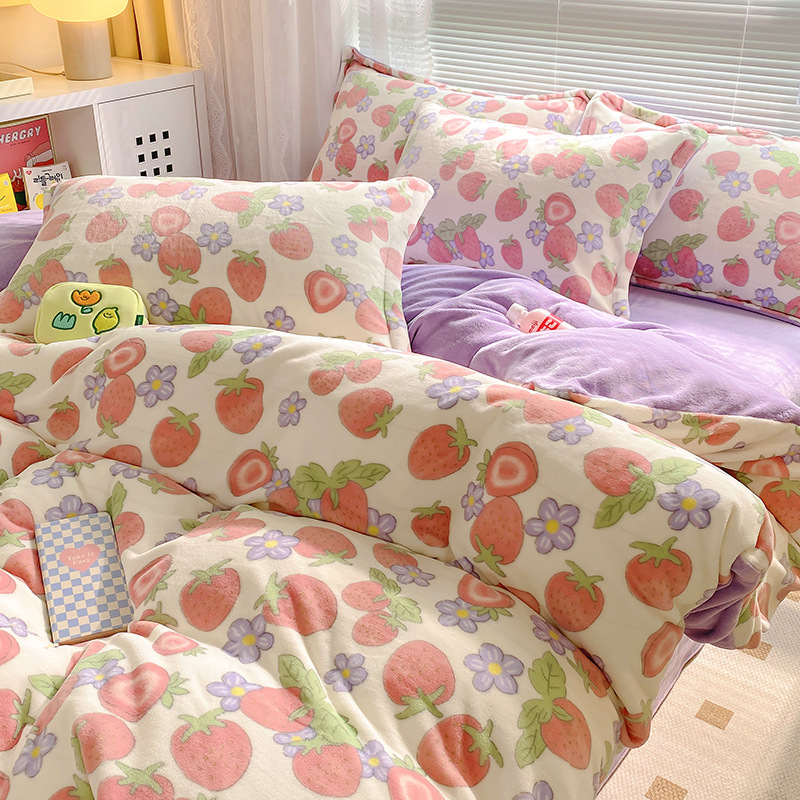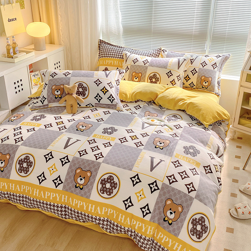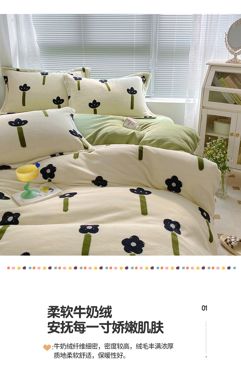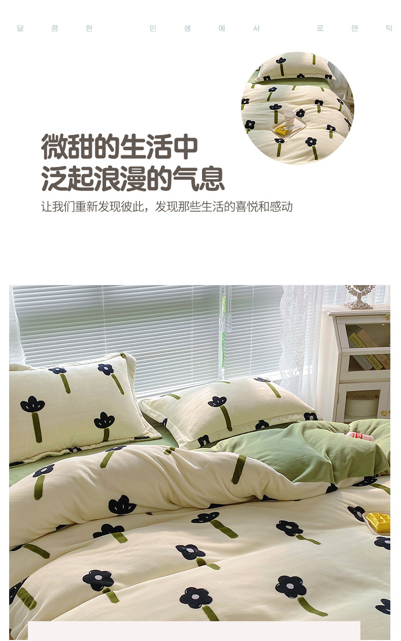 밀크 벨벳 4 피스 산호 양털 퀼트 커버 시트 겨울 따뜻한 플란넬 팔레 인 기숙사 침대 3 ~ 4 개