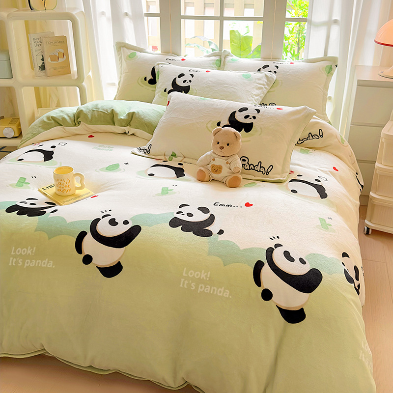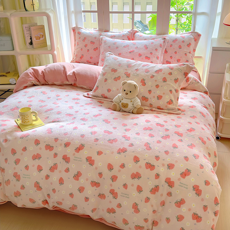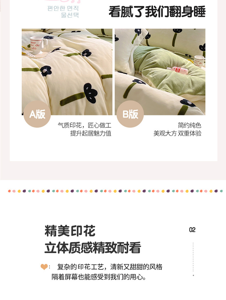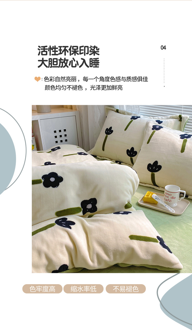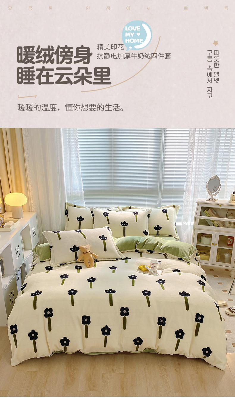 밀크 벨벳 4 피스 산호 양털 퀼트 커버 시트 겨울 따뜻한 플란넬 팔레 인 기숙사 침대 3 ~ 4 개스토어 가기