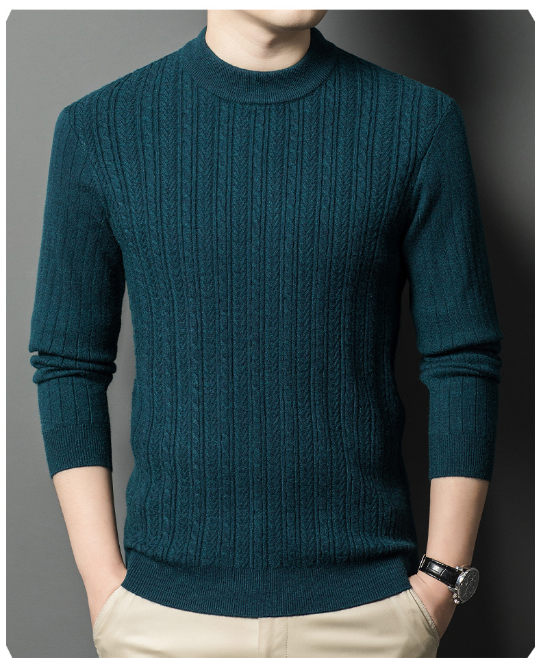 남자 하프 터틀넥 가을과 겨울 하이 엔드 두꺼운 자카드 니트 울 스웨터 슬림핏 올매치 중년 및 청소년 따뜻한베이스 셔츠스토어 가기
