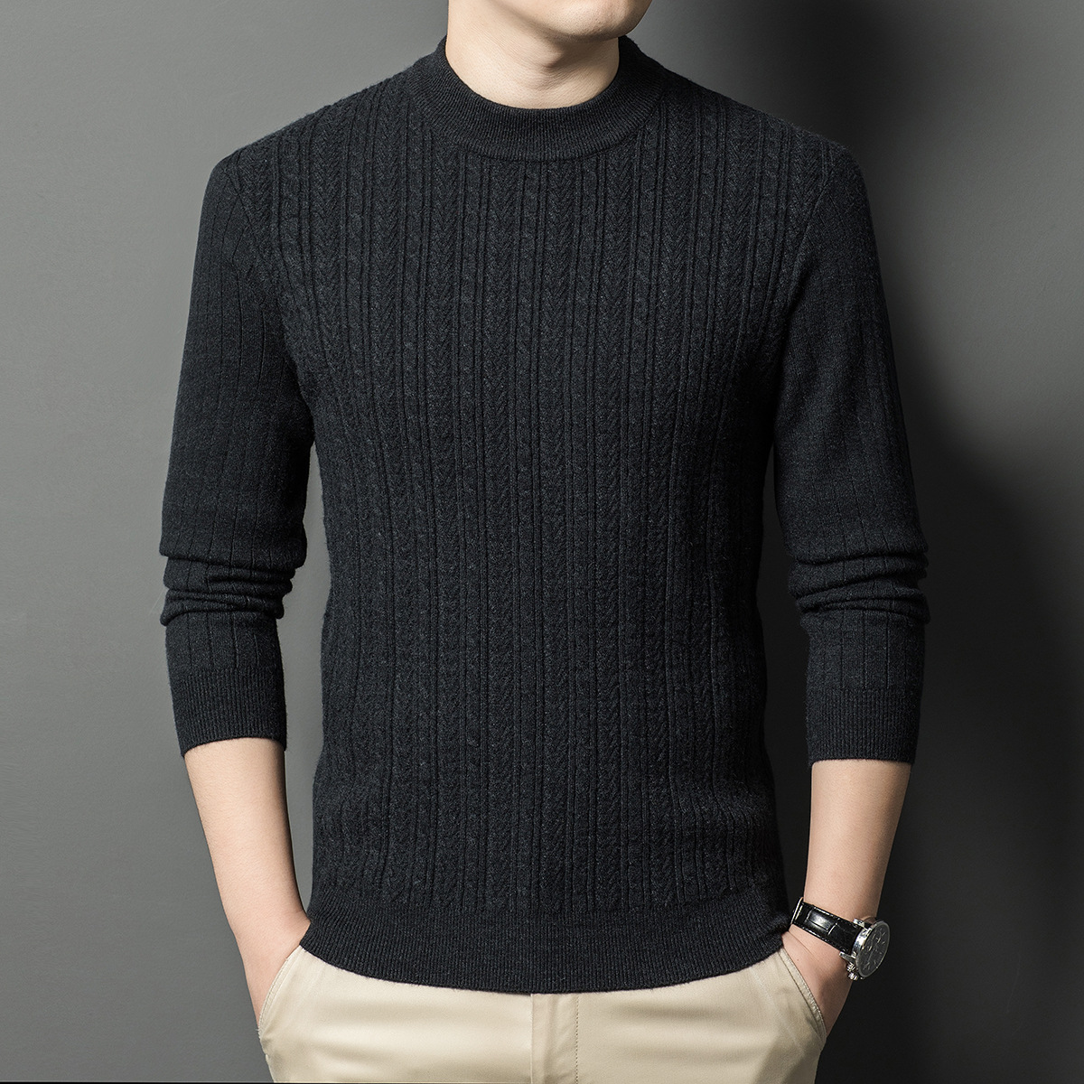 남자 하프 터틀넥 가을과 겨울 하이 엔드 두꺼운 자카드 니트 울 스웨터 슬림핏 올매치 중년 및 청소년 따뜻한베이스 셔츠