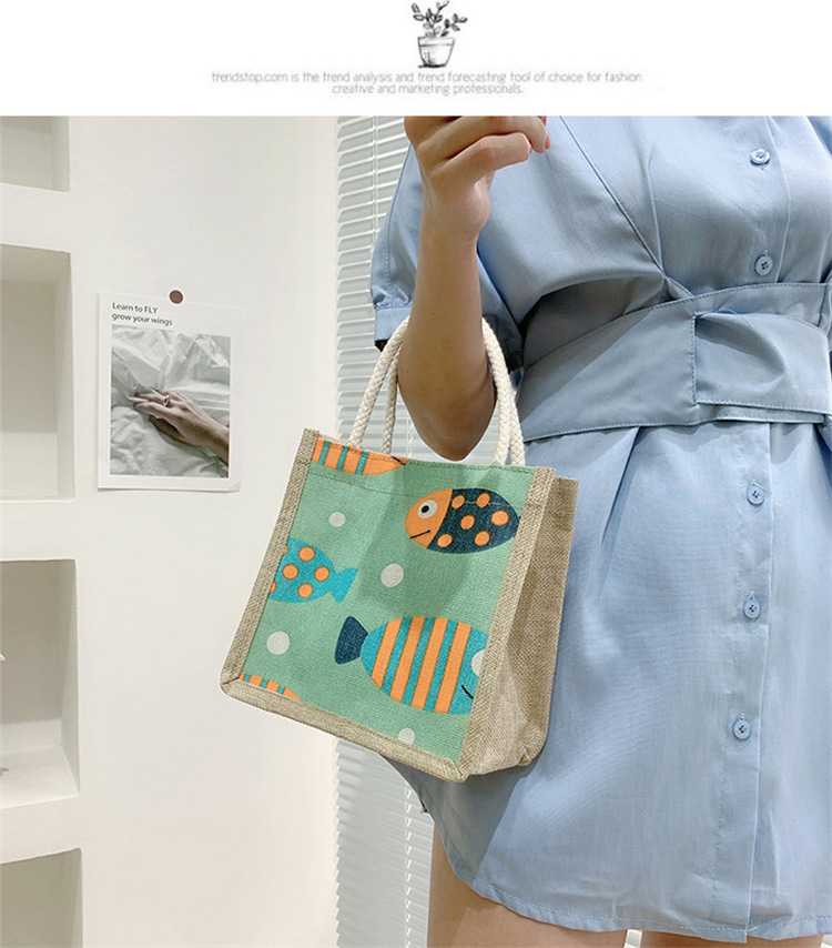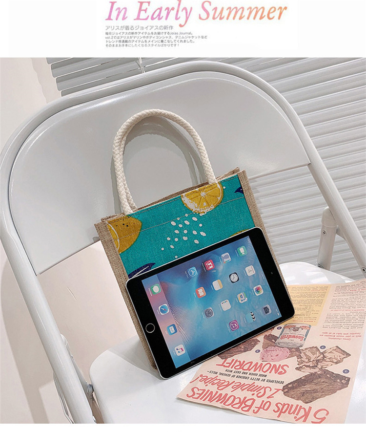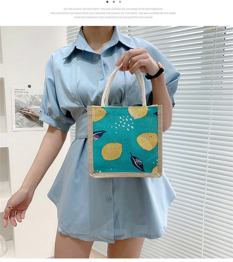 원래 간단한 린넨 가방 일본과 한국 여성 핸드백 유행 만화 예술 손 스낵 가방 환경 보호 도시락 가방스토어 가기