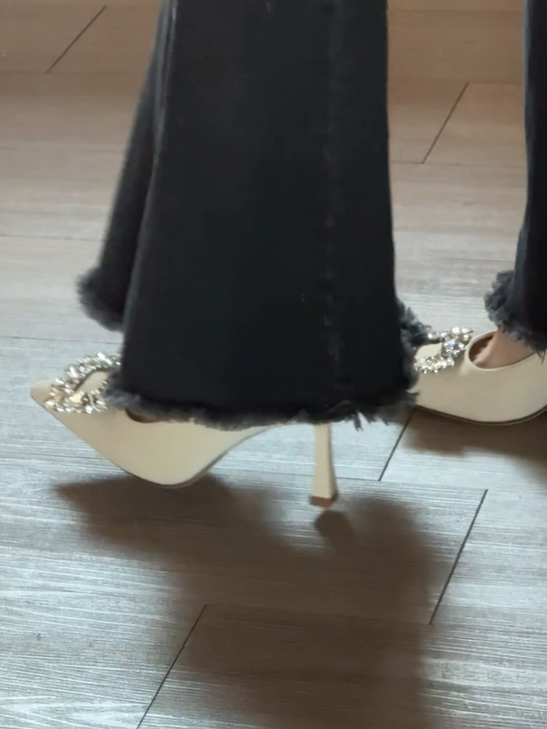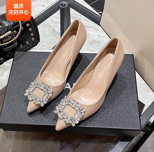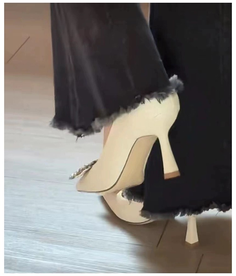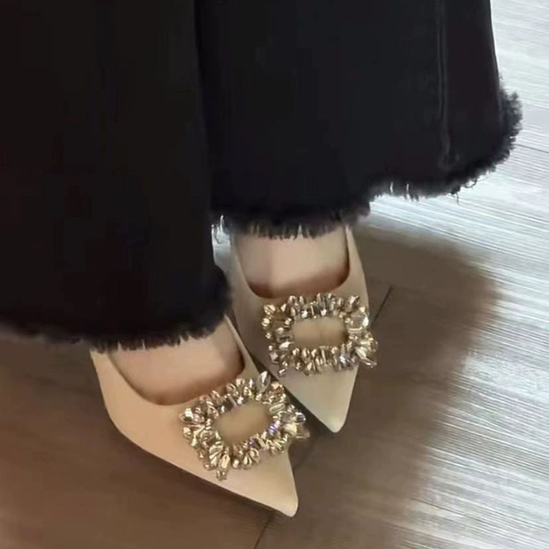 프랑스 스타일 우아한 뾰족한 스틸레토 힐 여성 가을 겨울 신부 웨딩 신발 라인스톤 스퀘어 버클 작은 디자인 센스 싱글 레이어 신발스토어 가기