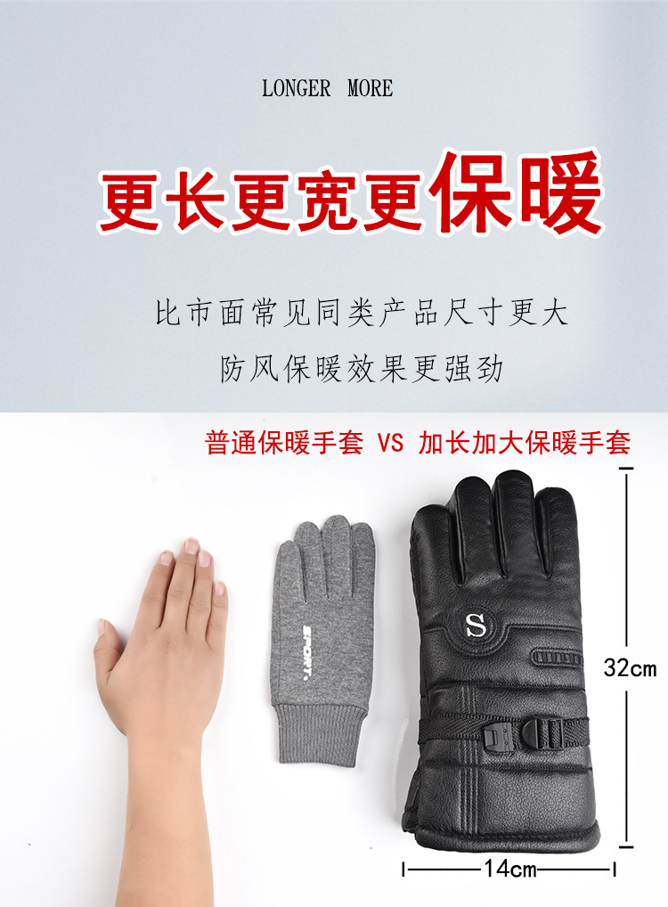 가죽 장갑 승마 오토바이 기모 남자의 두꺼운 따뜻한 겨울 승마 전기 자동차 방풍 방수 차가운 손