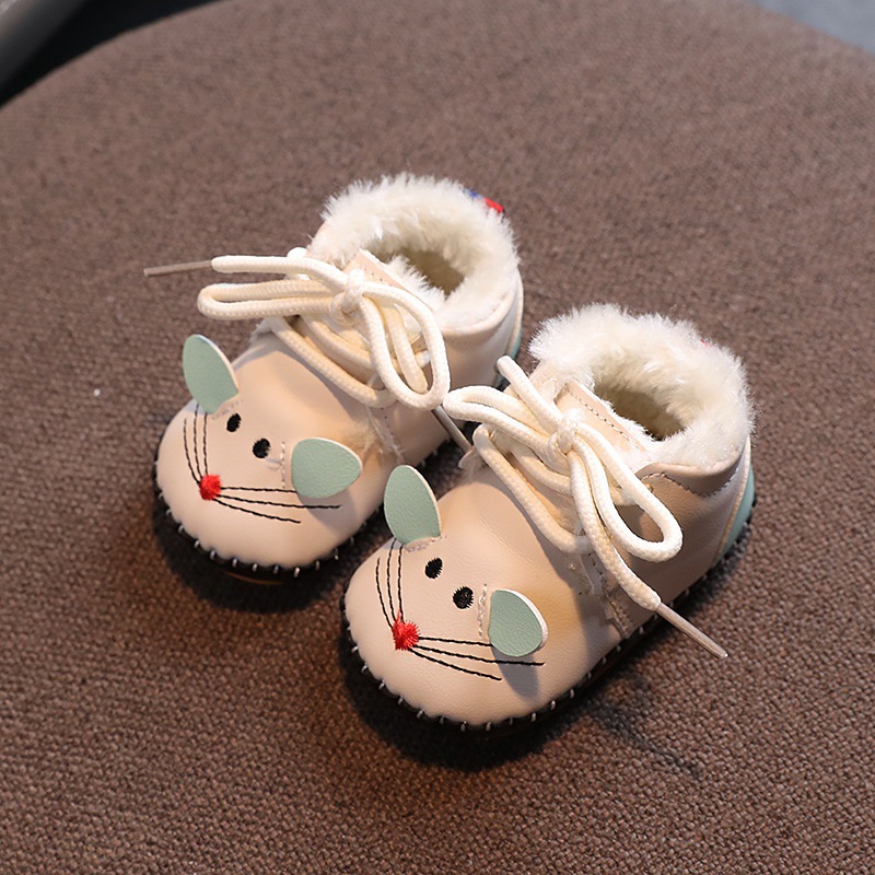 한 조각 유아 신발 코튼 신발 스티치 아기의 머리 아기의 사전 단계 신발 가방 신발 신생아 남성과 여성의 기모 두꺼운 흰색스토어 가기