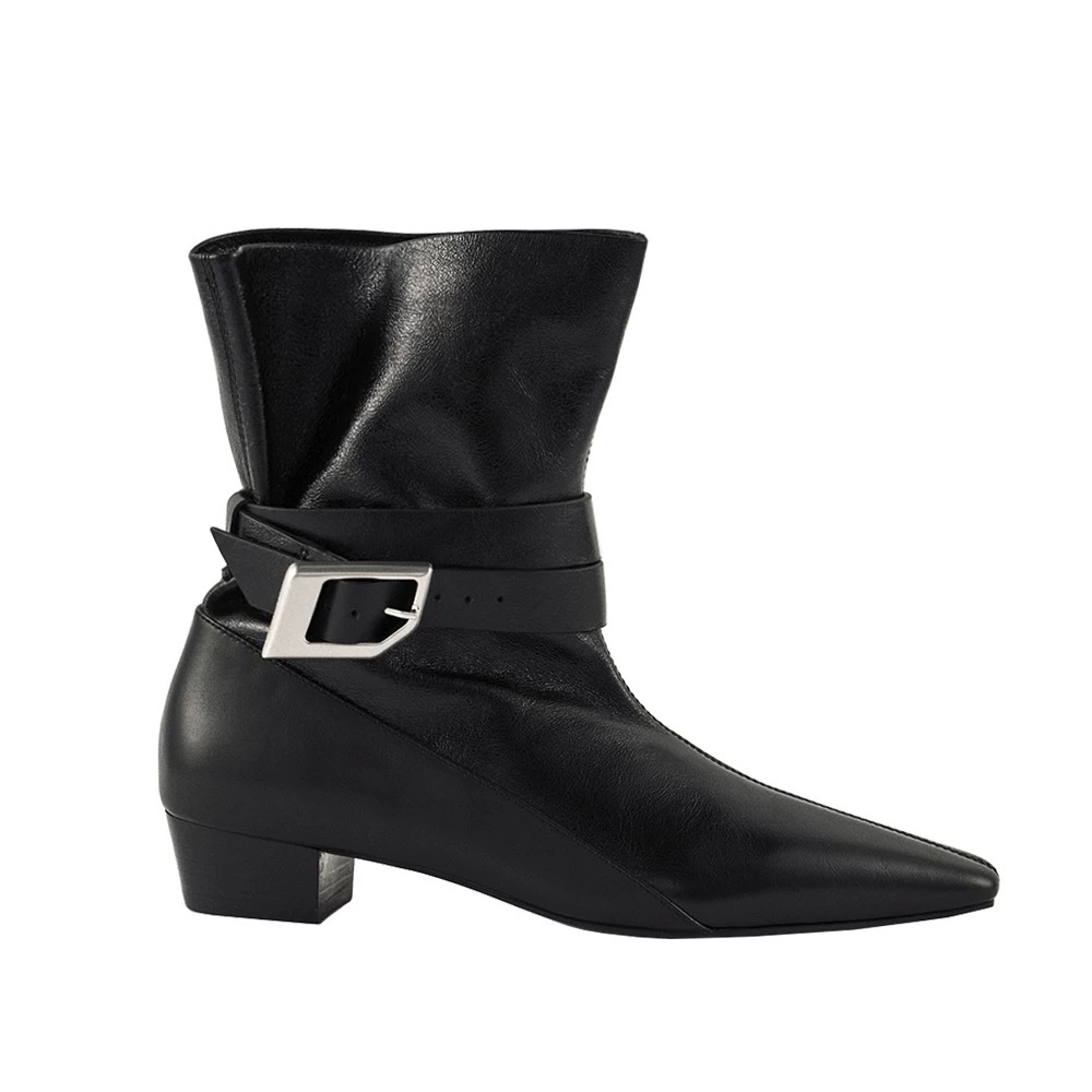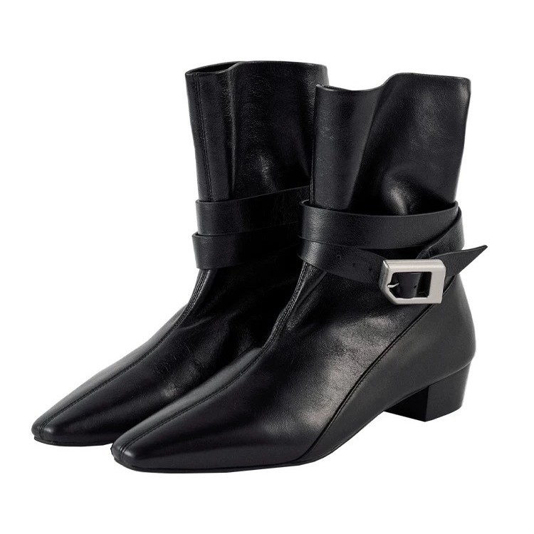 한국 스타일 틈새 디자인 작은 광장 중간 힐 두꺼운 힐 벨트 버클 짧은 부츠 얇은 부츠 여성 2024 가을 겨울 마틴 부츠스토어 가기