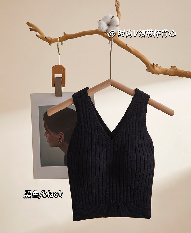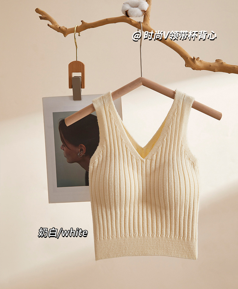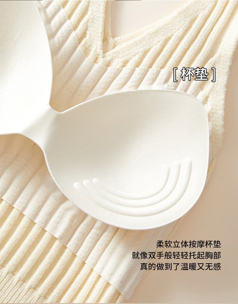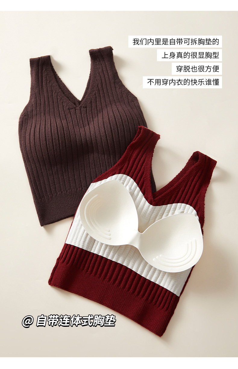 V 넥 핏 니트 카미 솔 여성용 2024 가을 및 겨울 슬림 핏 슬리밍 내복 외부 착용 탑, 가슴 패드 따뜻한