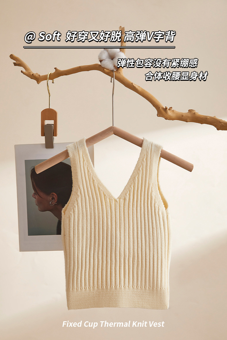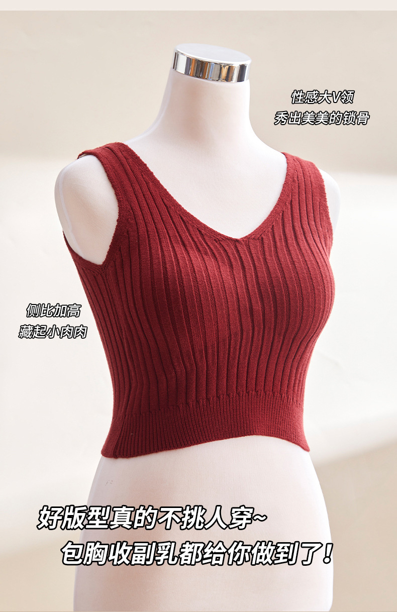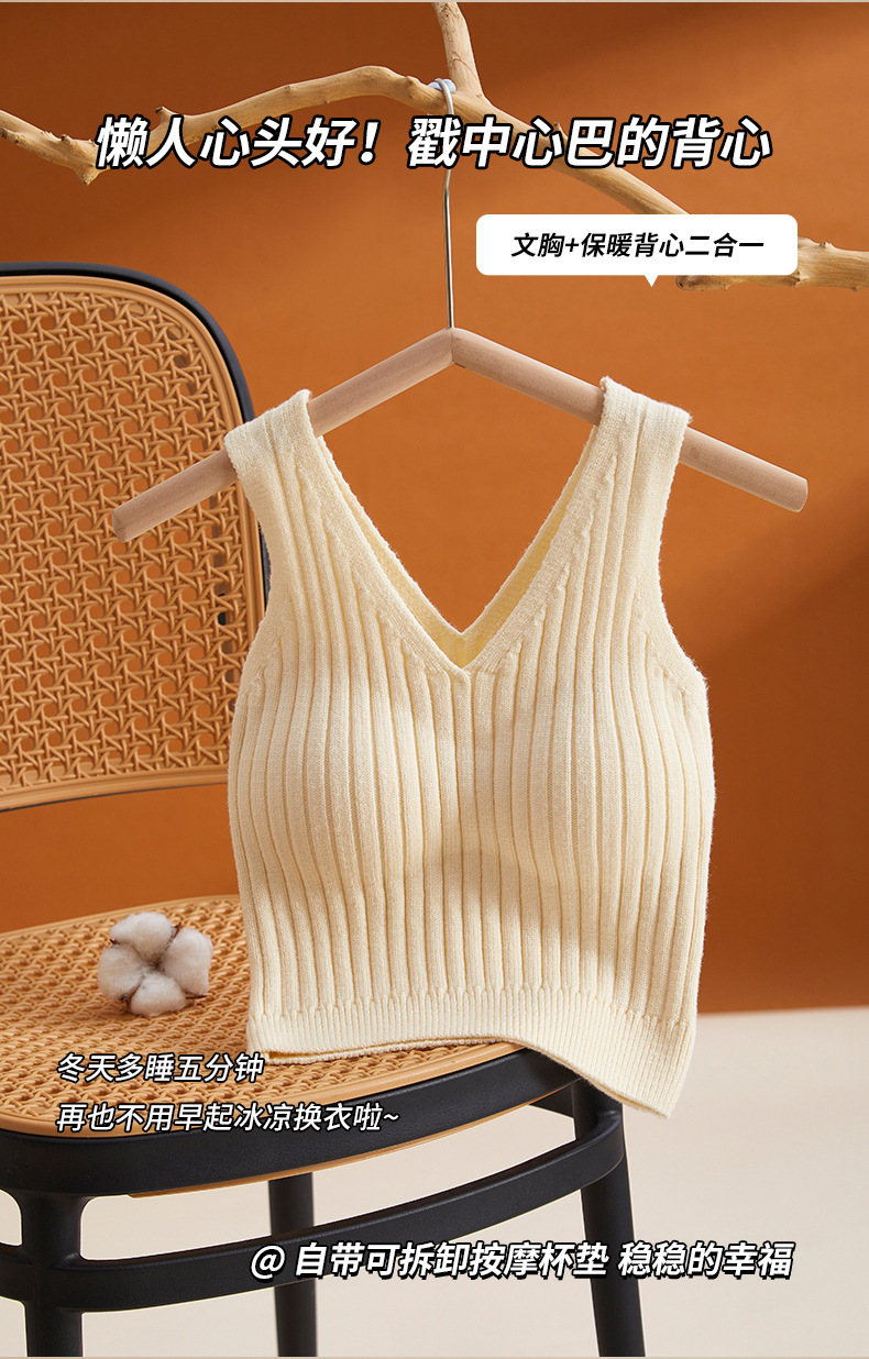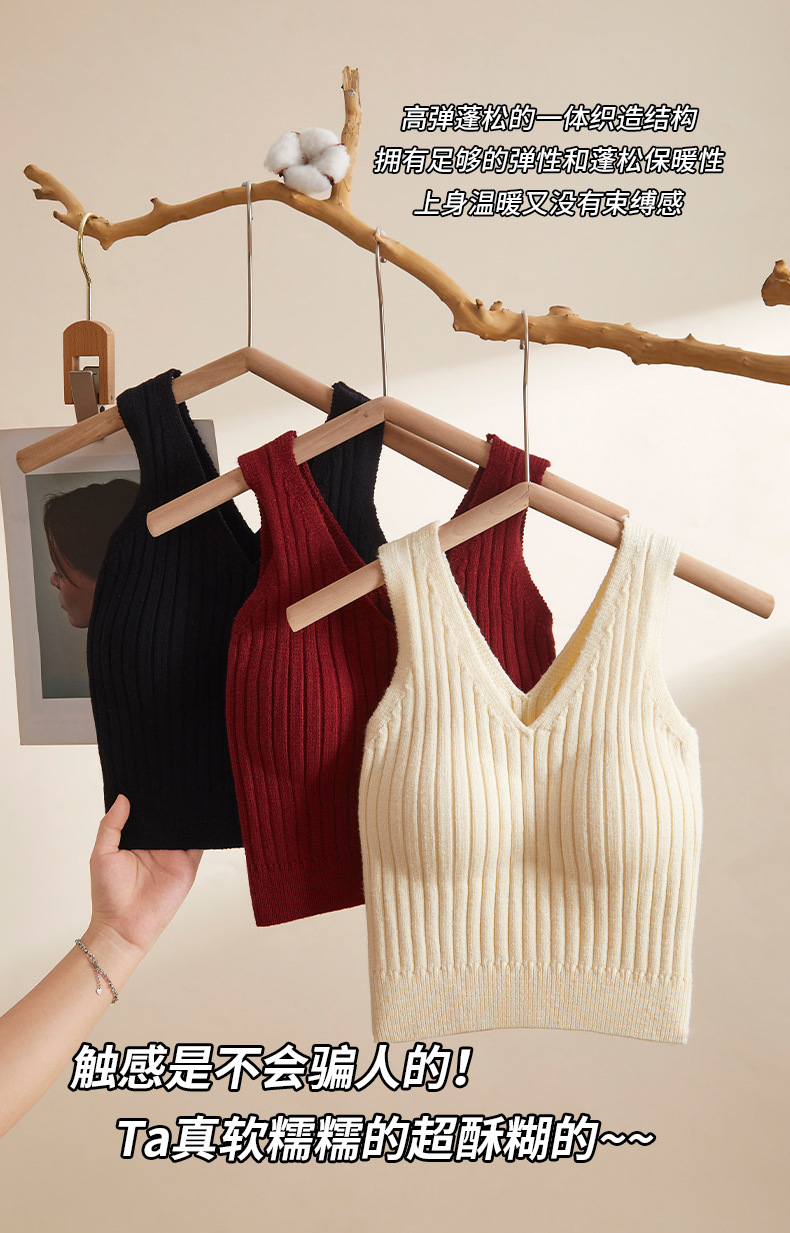 V 넥 핏 니트 카미 솔 여성용 2024 가을 및 겨울 슬림 핏 슬리밍 내복 외부 착용 탑, 가슴 패드 따뜻한스토어 가기