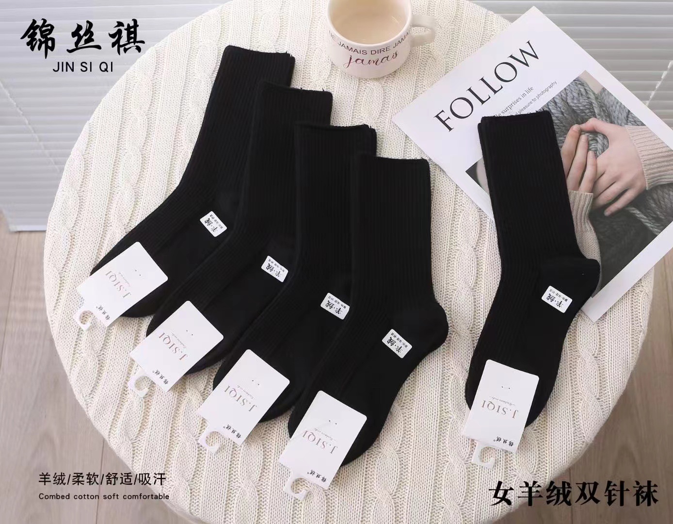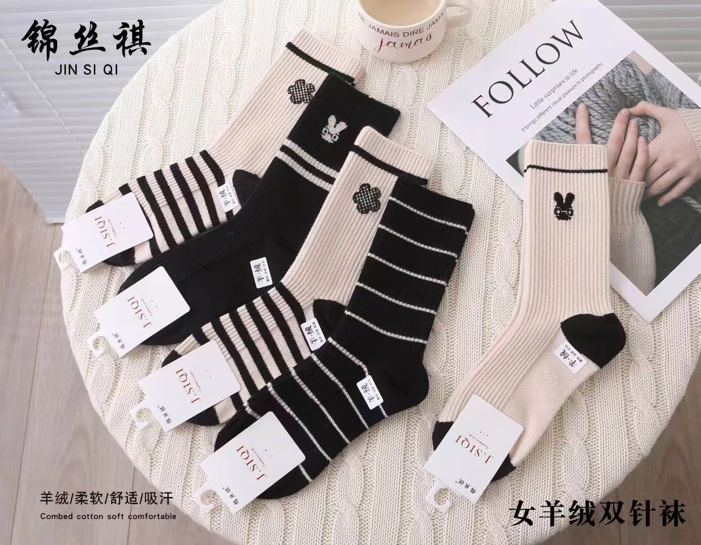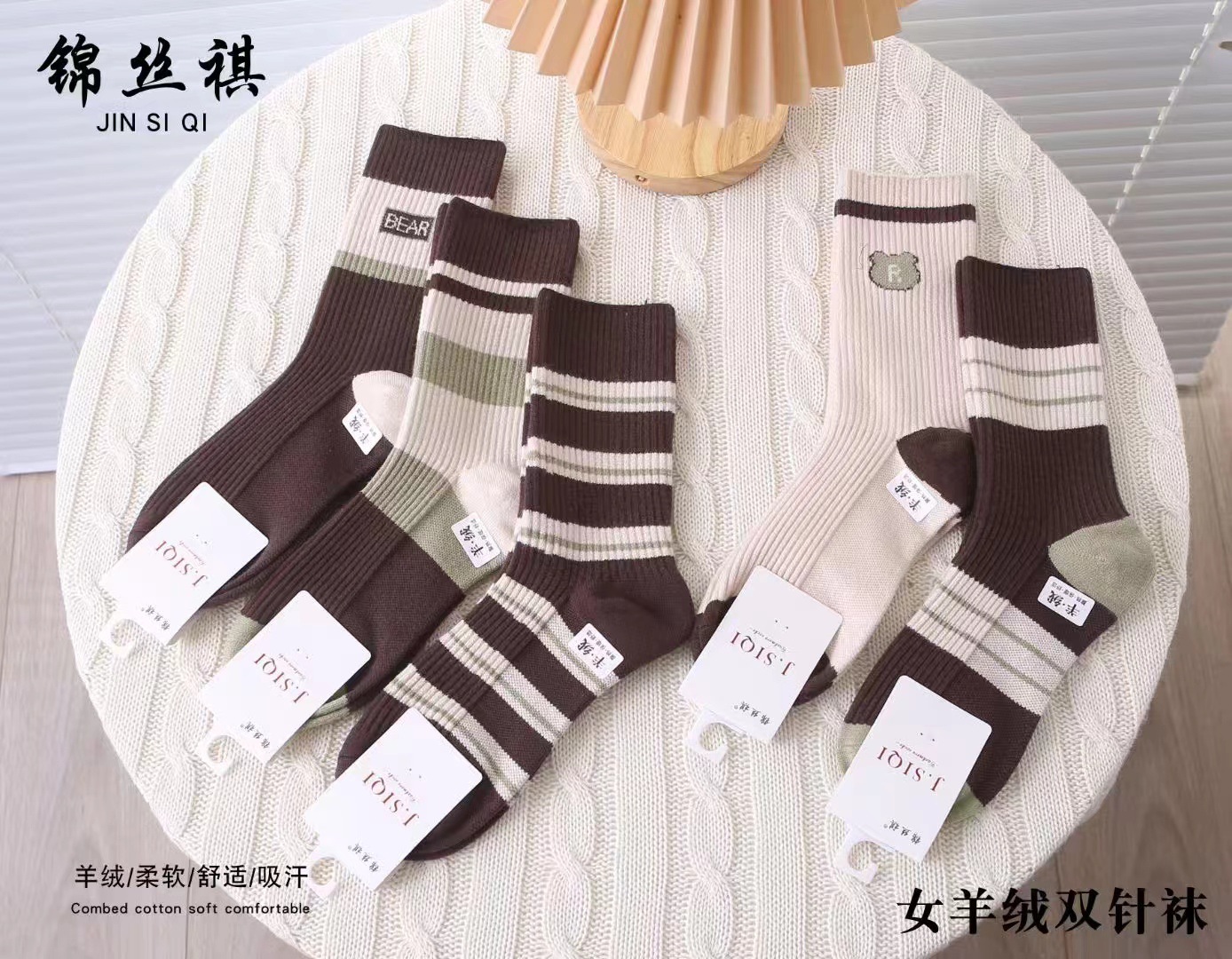 가을과 겨울 여성의 모조 더블 바늘 캐시미어 긴 배럴 스택 양말 다크 브라운 줄무늬 두꺼운 따뜻한 높은 송아지 양말 만화 트렌드