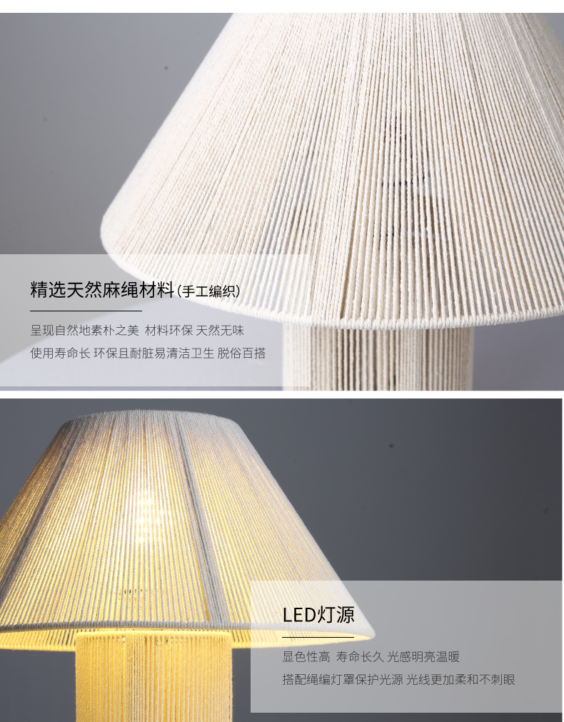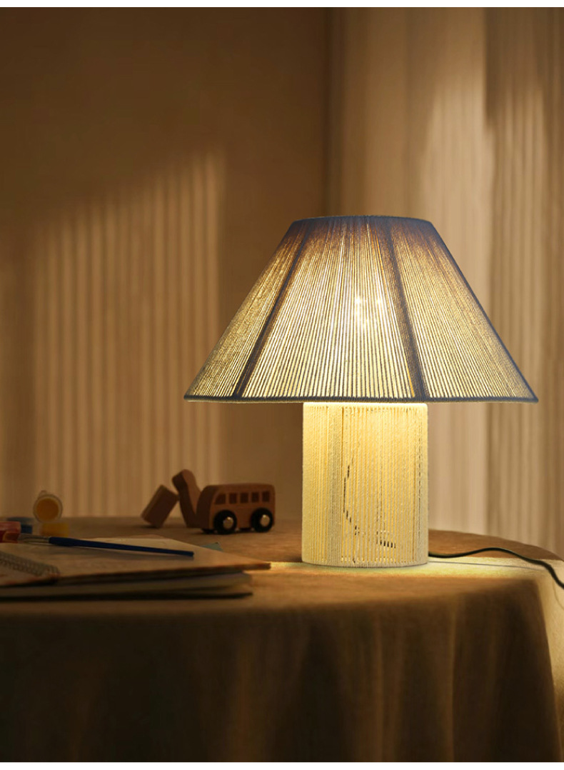 침실 테이블 램프 침실 램프 중국 거실 연구 일본 홈스테이 대마 로프 짠 복고풍 눈 보호 분위기 장식 램프