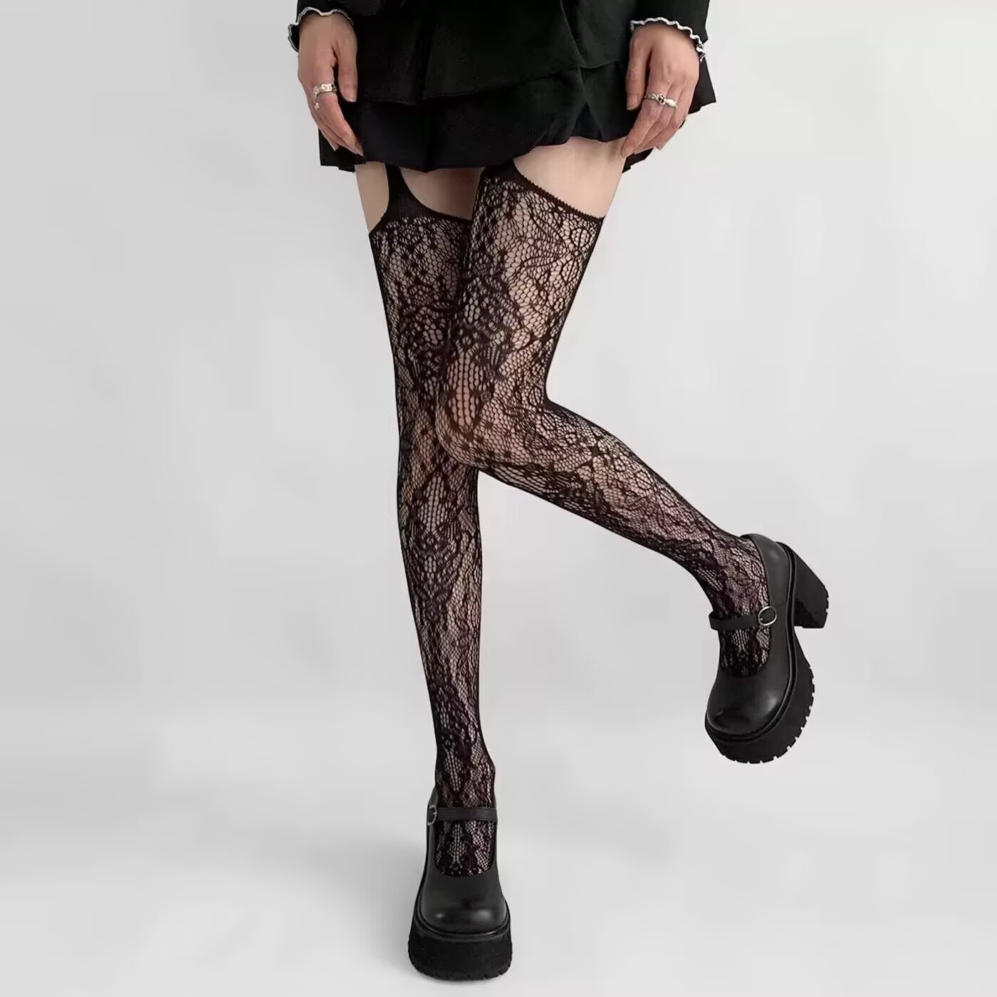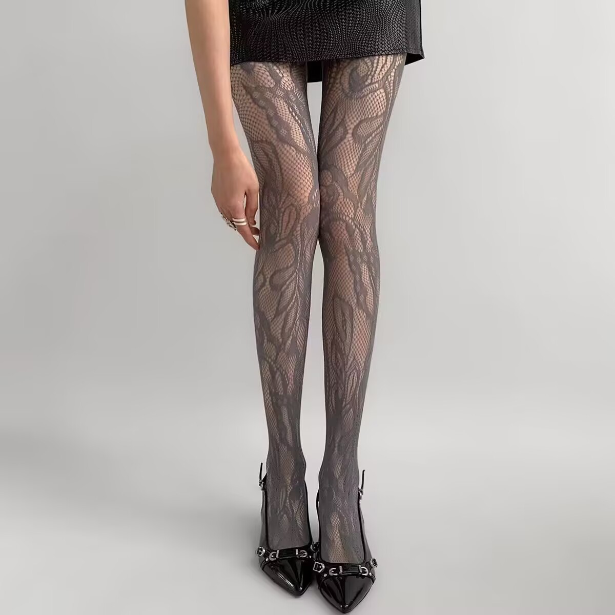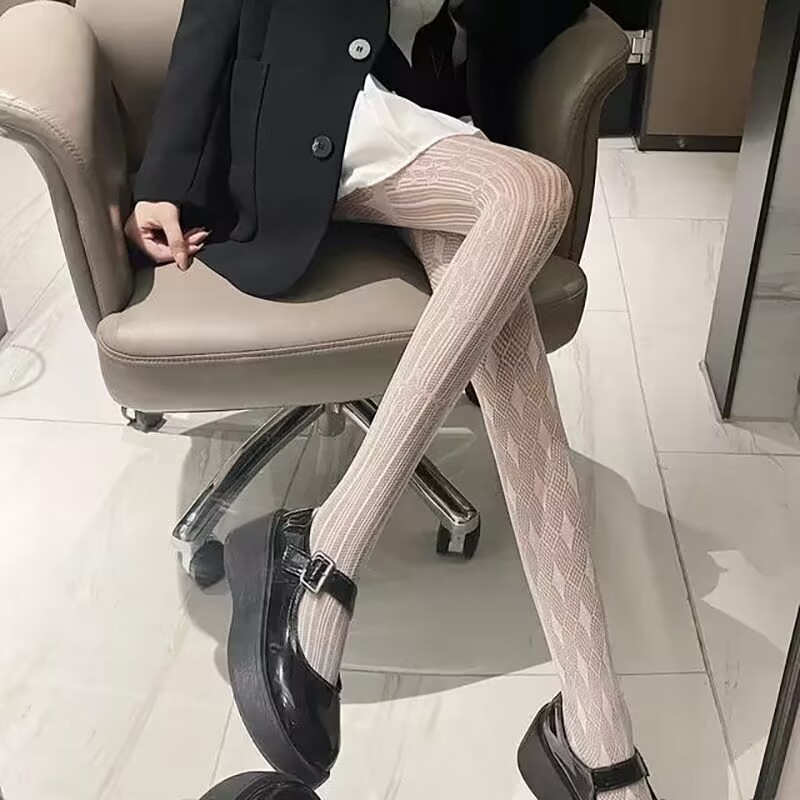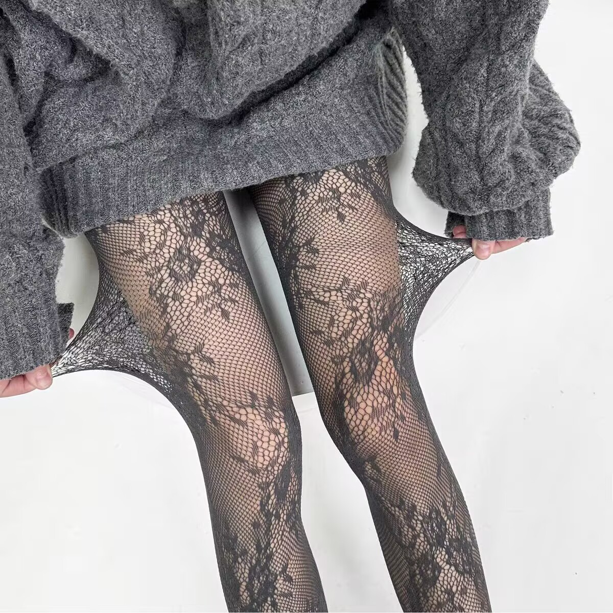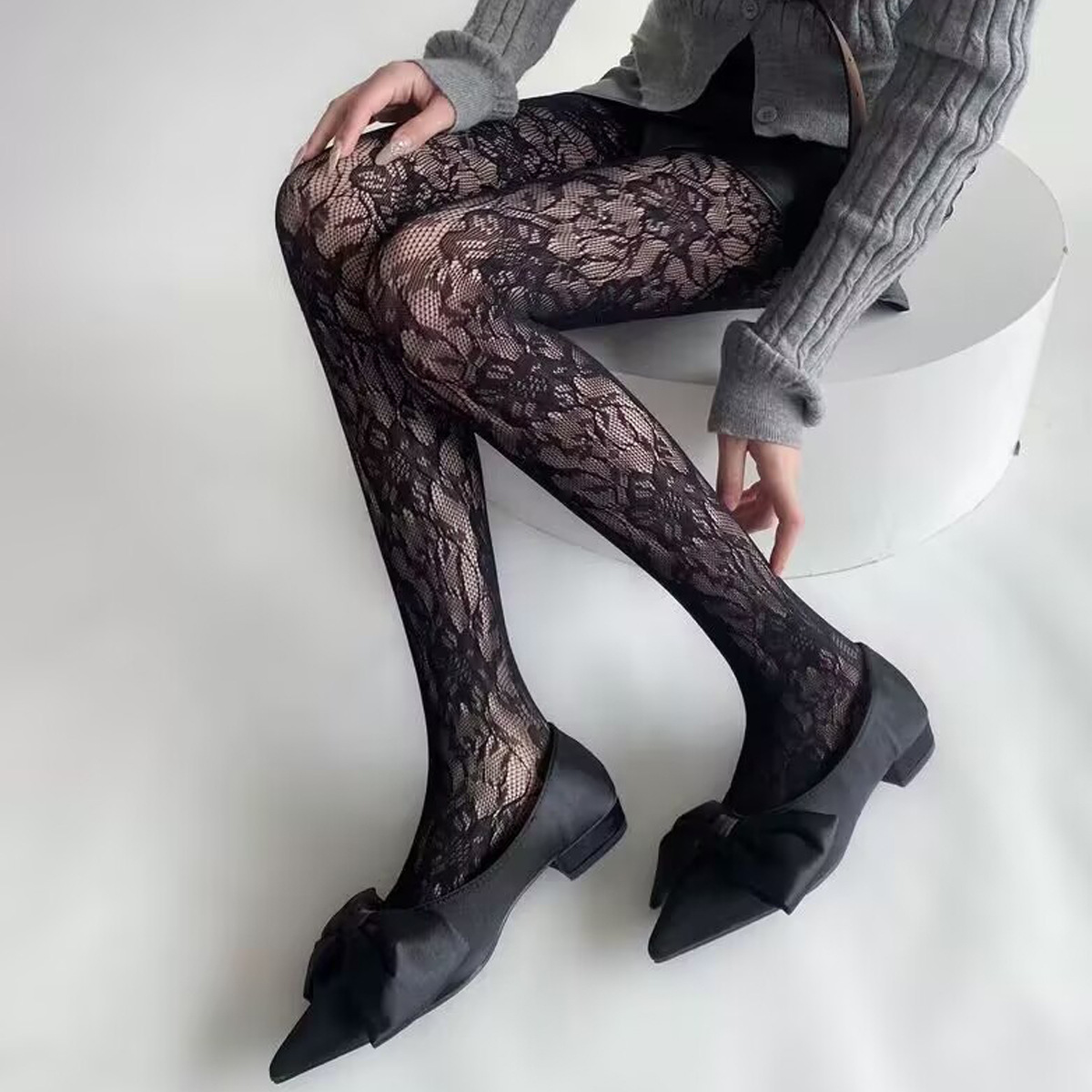 여성용 일본 흰색 스타킹, 얇고 순수한 섹시한 검은색 레이스 자카드 양말, 걸림 방지 실크 꽃 덩굴 아름다운 다리 망사 양말스토어 가기